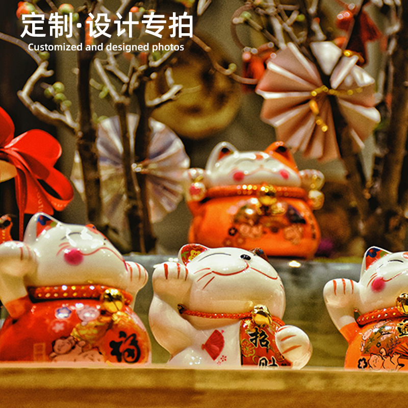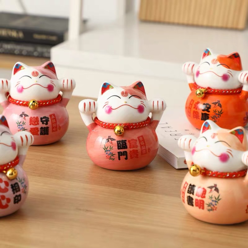 Ceramic Lucky Cat Piggy Bank Floral Baskets With Small Ornaments Creative Event Annual Party Gifts