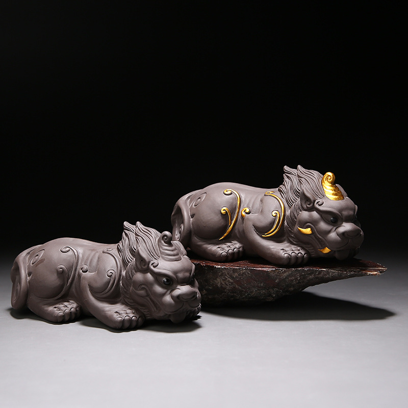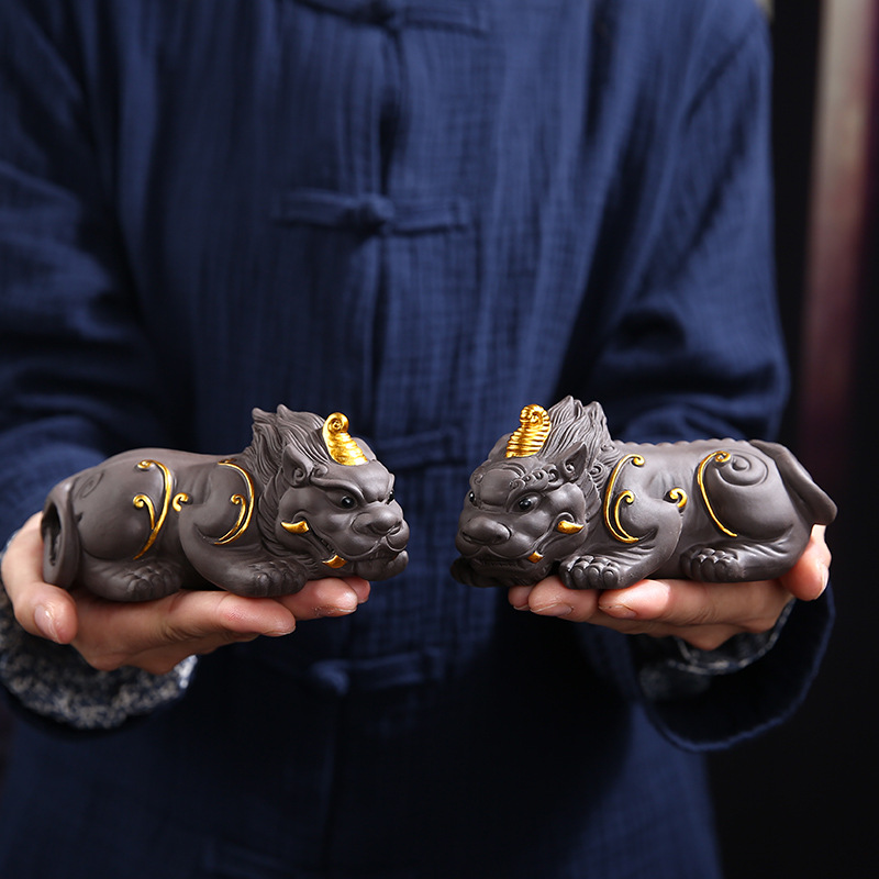 Purple Clay Lucky Pixiu Tea Pet Can Raise Money, Large Ornaments, Personalized Creative Golden Toad Tea, Tea Ceremony Accessories