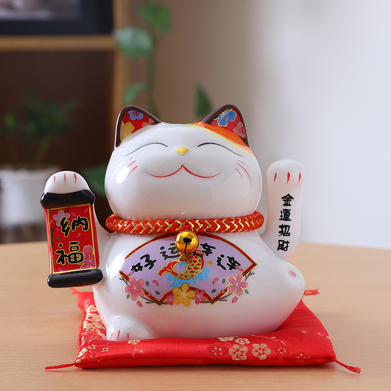 Electric Trumpet Waving Hand Lucky Cat Ornament Ceramic Home Store Opening Creative Gift Automatic Beckoning Lucky Cat