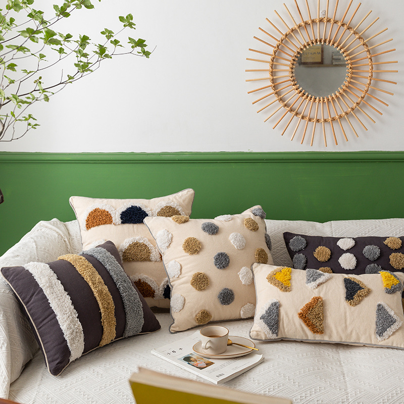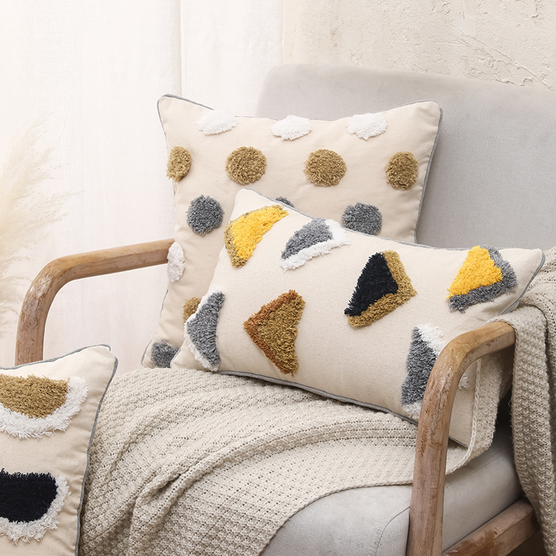 Nordic Bohemian Style Living Room Sofa Pillow Light Luxury Cotton Canvas Tufted Waist Pillow Cushion Pillow Cover