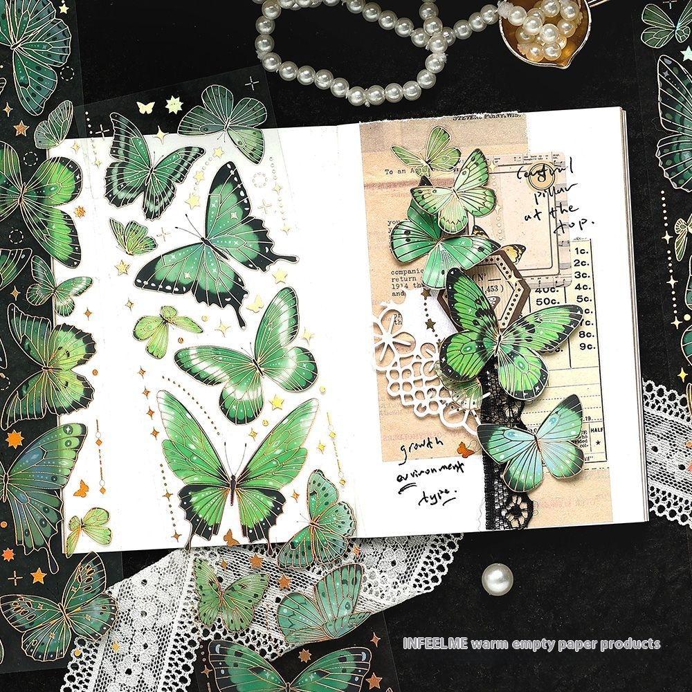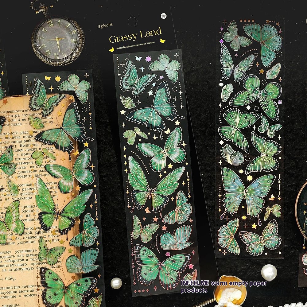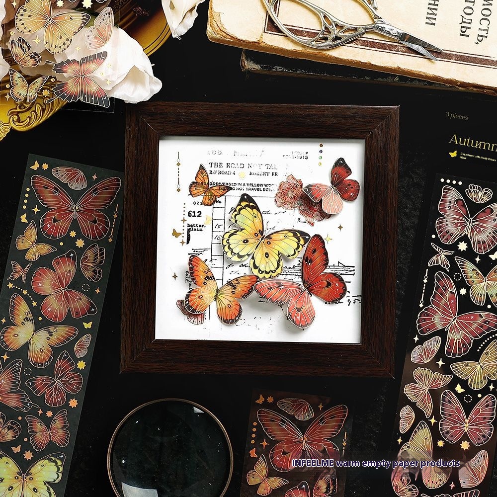 Infeelme P E T Segmented Tape Butterfly Album Series Butterfly Hot Stamping Gold Segmented Tape3 Pieces In