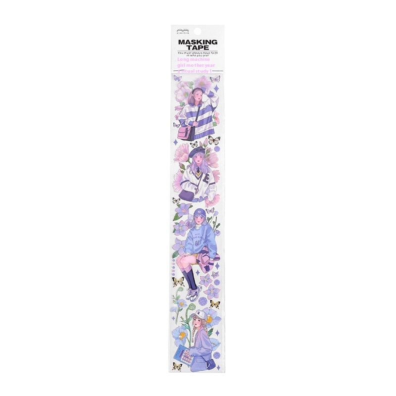 Paper More P E T Long Tape Flower Girl Series Cartoon Character Illustration Handbook Material Stickers4 Styles