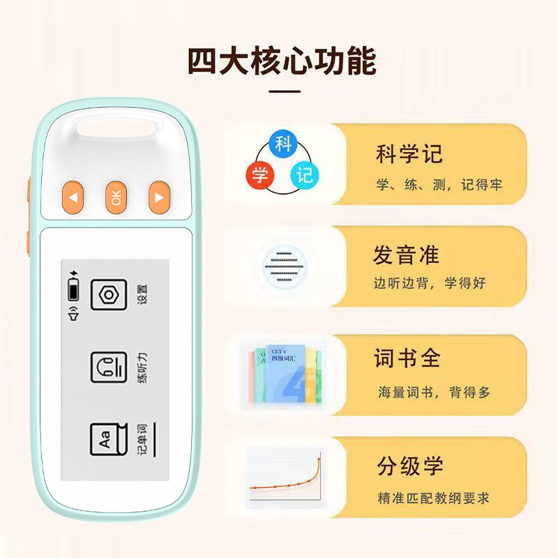 Electronic Word Cards Ink Screen Mini Portable Word Machine Student English Level4 And Level6 Word Memorization Artifact