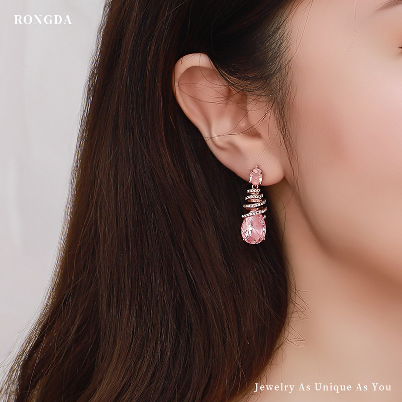 23 Korean Style Spring Small Fresh Earrings S925 Silver Needle Earrings For Women Light Luxury Diamond Drop-shaped Gemstone Earrings