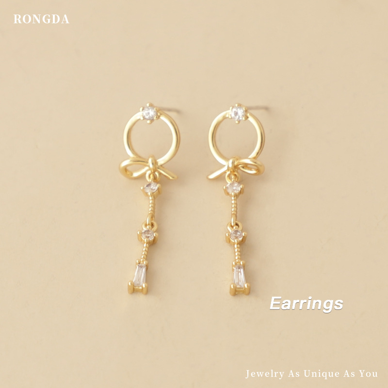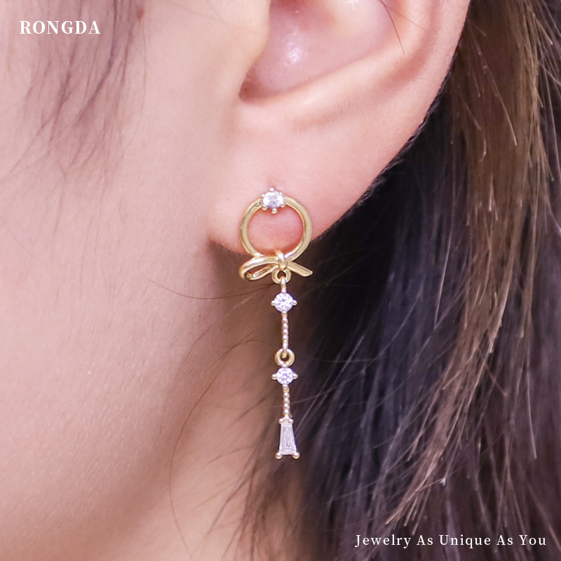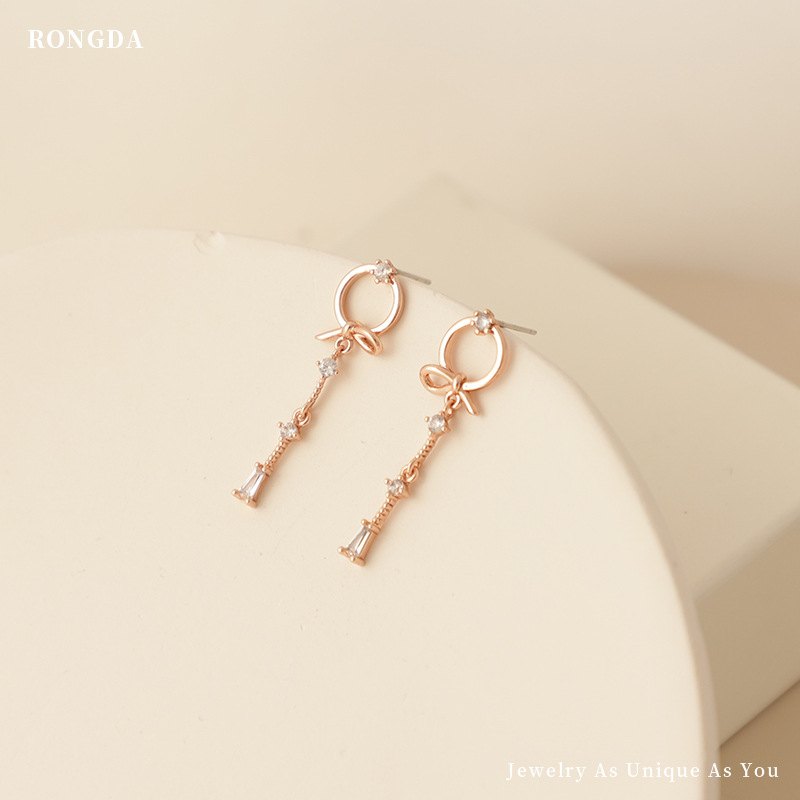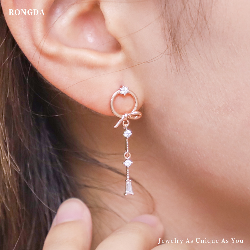Korean Style Fashion Earrings Bow S925 Silver Needle Earrings For Women Tassel Wax Inlaid Zircon Earrings Qingdao Jewelry