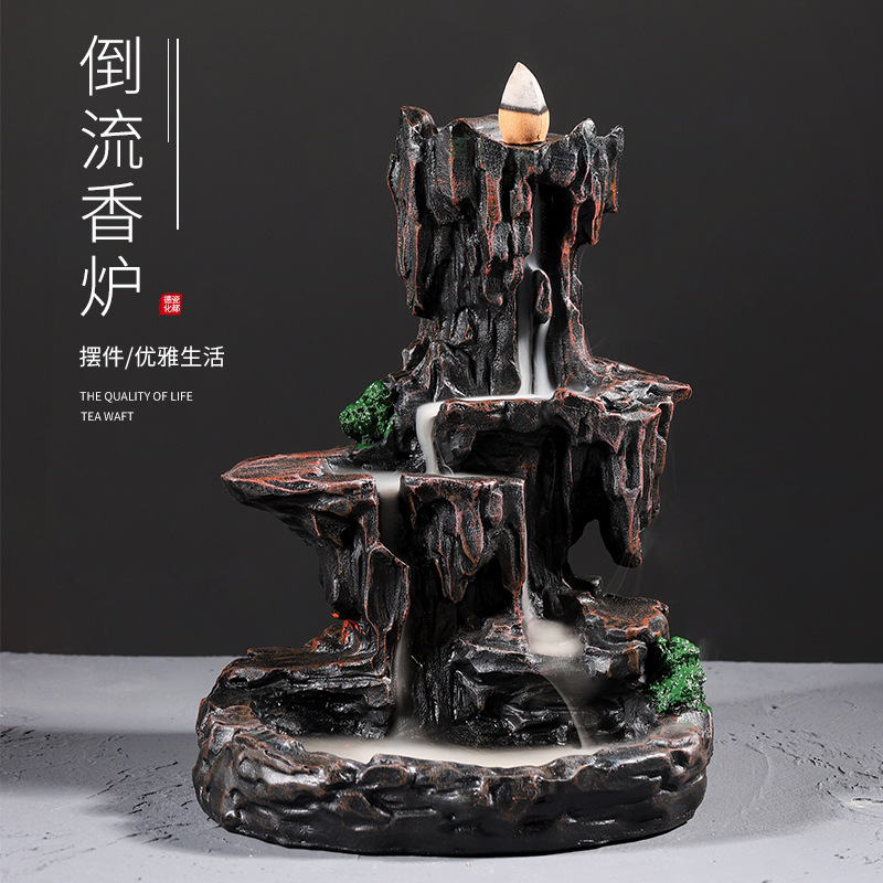 Resin Backflow Incense Burner, Mountain Flowing Water, Creative Retro Rockery, Ornamental Flowing Cloud Smoke Aromatherapy Burner, Direct From The