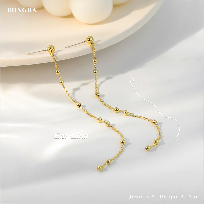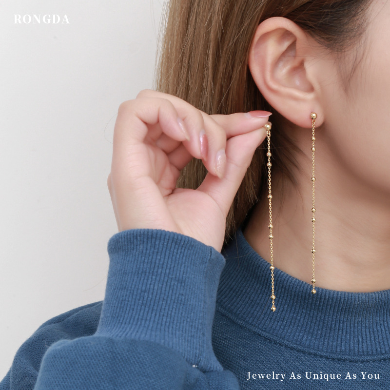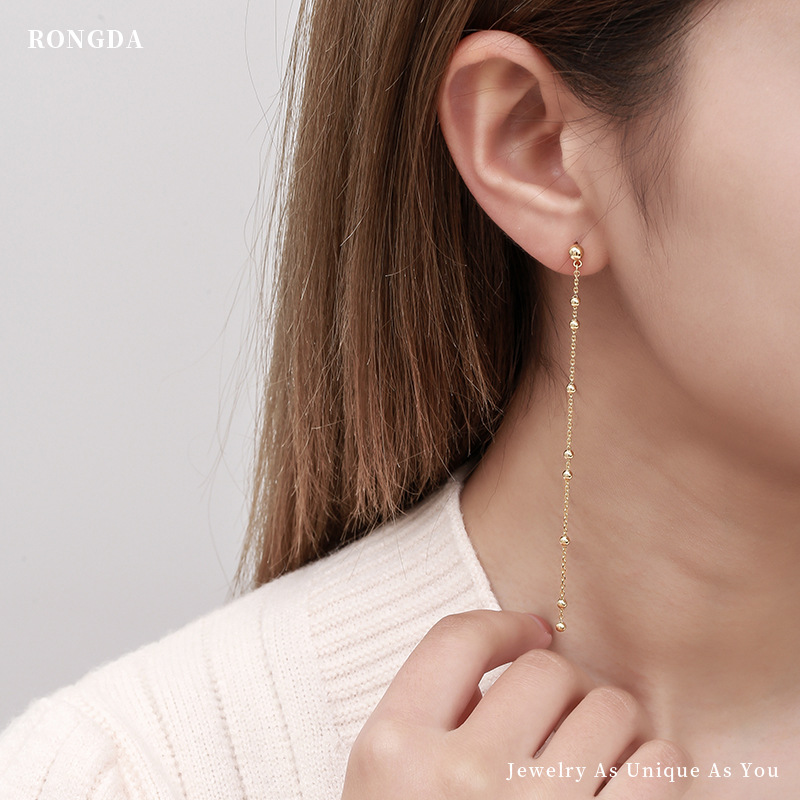 Rongda Huixin European And American Design Jewelry Temperament Bean Chain Ear Wire Personality Retro Long Tassel Earrings Women's Earrings