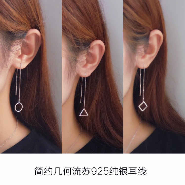 Niche Jewelry S925 Sterling Silver Geometric Ear Wire Korean Style Simple Triangle Circle Earrings Square Earrings For Women