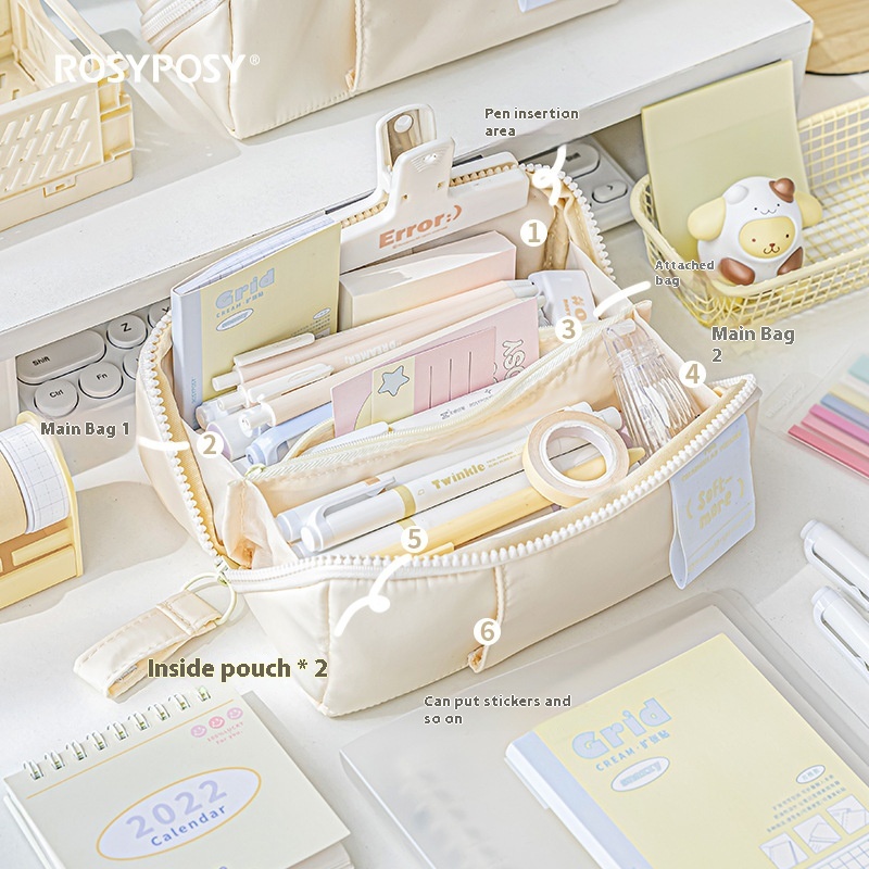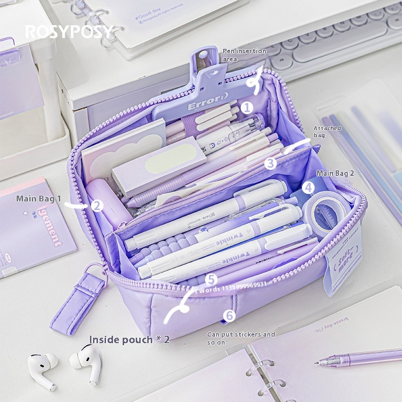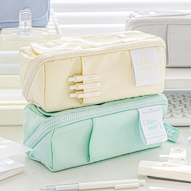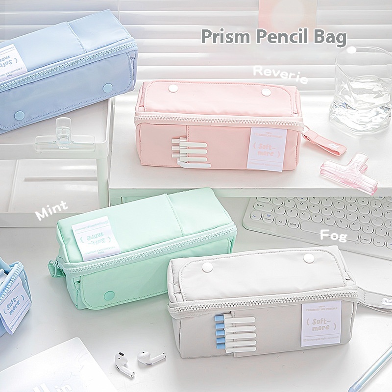 Rosy Posy Flexible Large-capacity Partitioned Storage Double-sided Tofu-shaped Pencil Bag Large Opening P R I S M Prism Pencil Bag