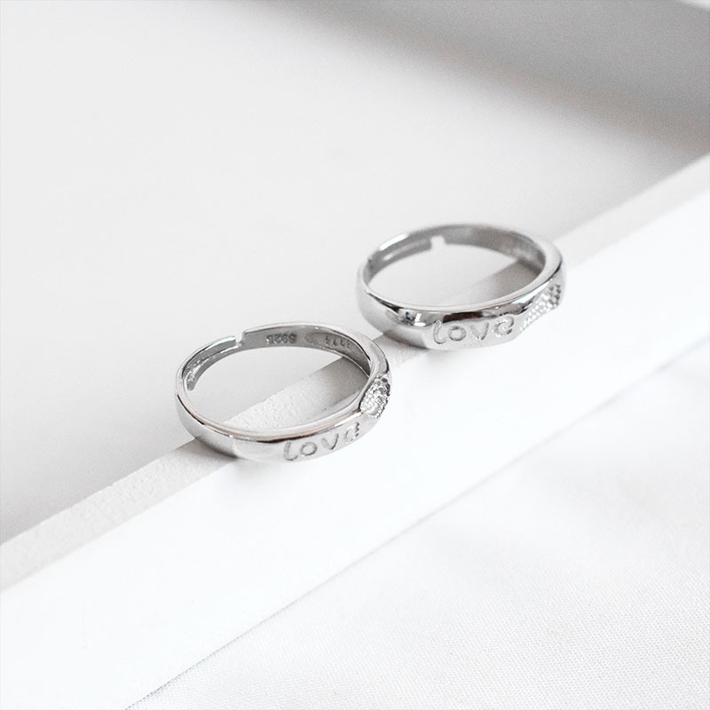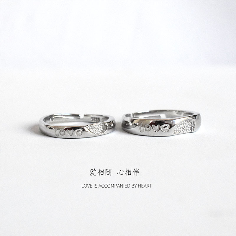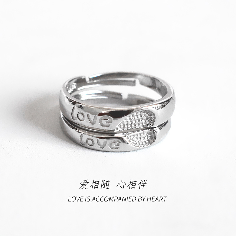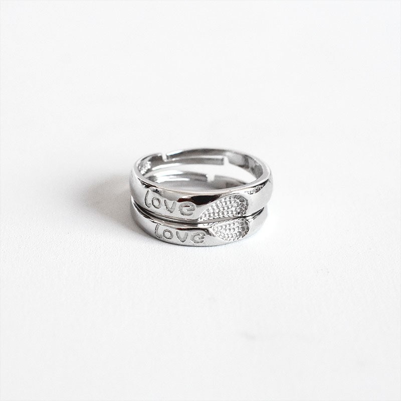 S925 Sterling Silver Heart-to-heart Ring Simple Couple Open Ring Men And Women's Tail Ring Temperament Love Ring Jewelry