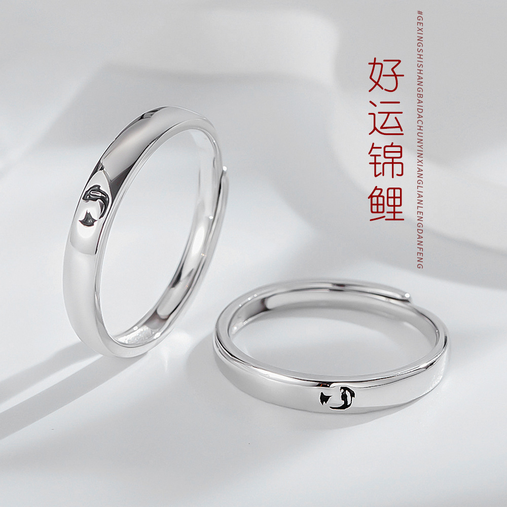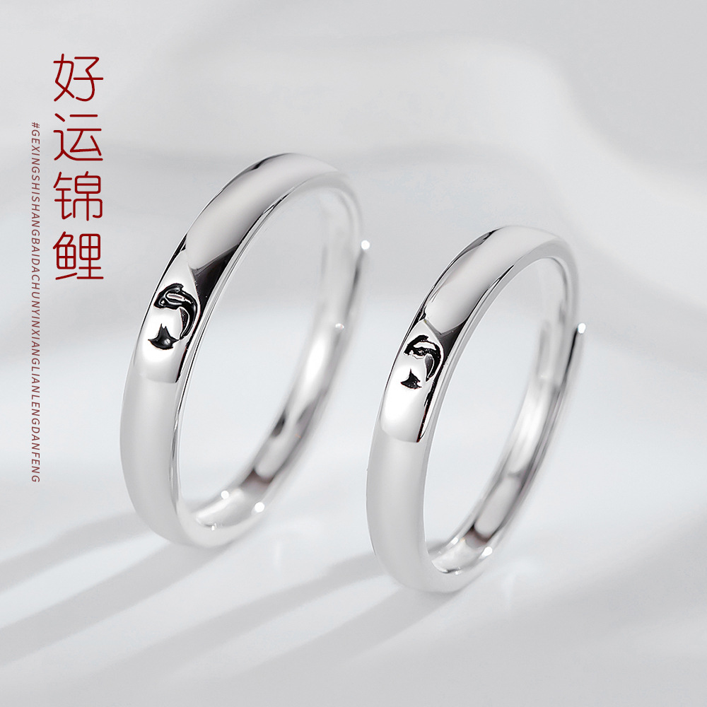 S925 Sterling Silver Couple Rings A Pair Of Men And Women's Rings Chinese Style Koi Carp Ring Niche Original Design Jewelry