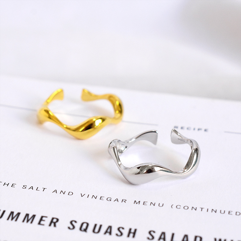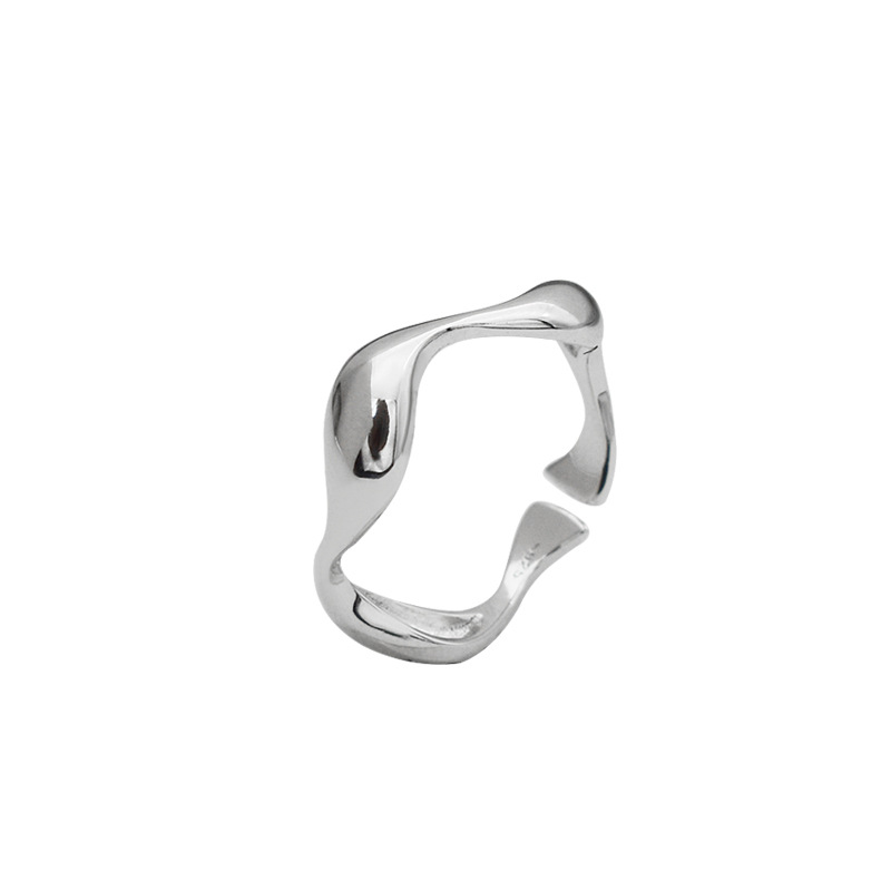 S925 Sterling Silver Ring Smooth Minimalist Silver Ring Irregular Wave Ring Personality Female Chic Korean Jewelry