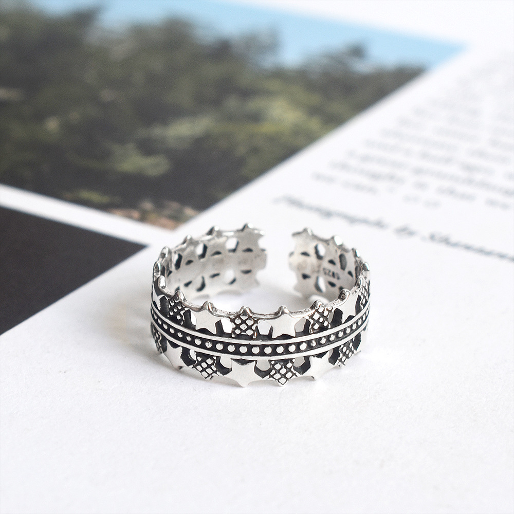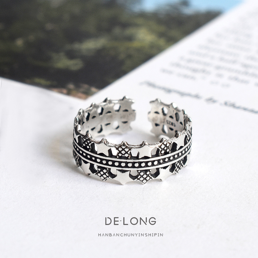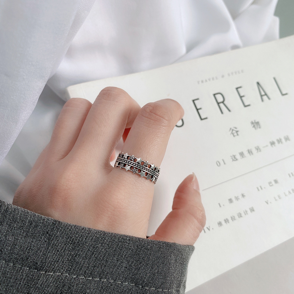 Personalized Retro Double-layer Star Ring925 Sterling Silver Ring Korean Versiony Female Five-pointed Star Silver Ring Jewelry
