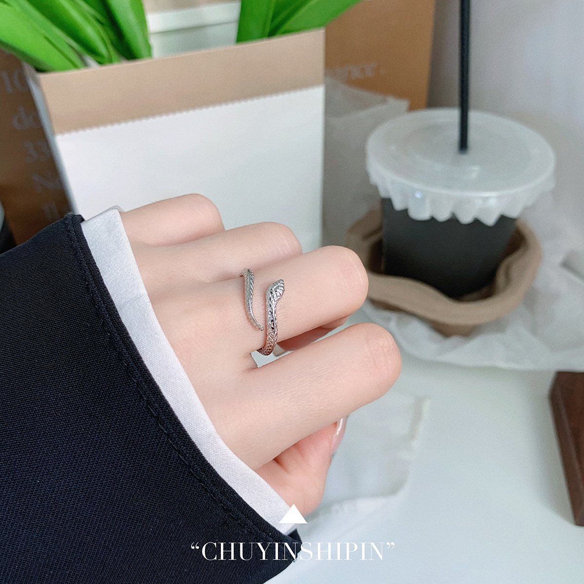 S925 Sterling Silvery Personality Snake Ring Temperament Niche High-end Jewelry Design Small Snake Open Ring