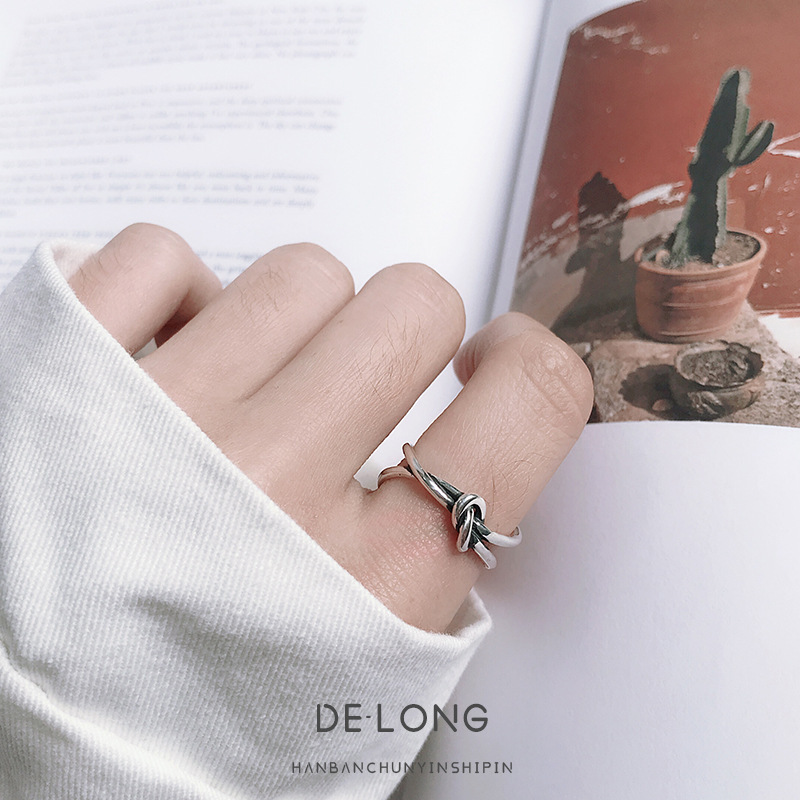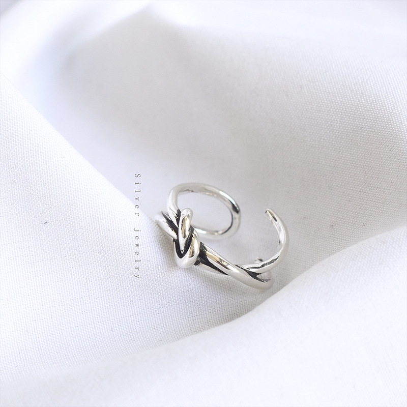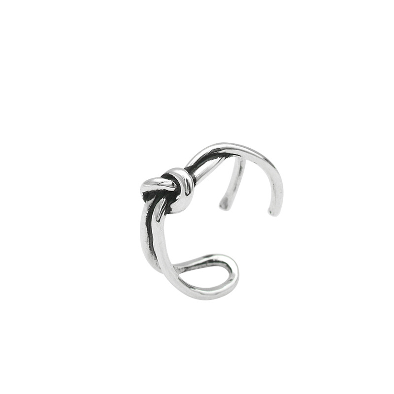 S925 Sterling Silver Ring Retro Personality Knotted Ringy Women's Knotted Silver Ring Korean Version Simple Jewelry