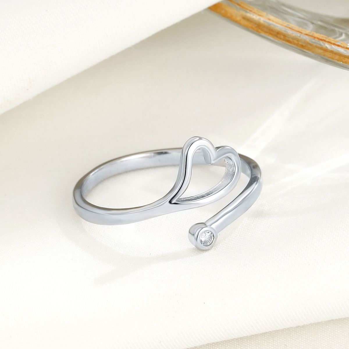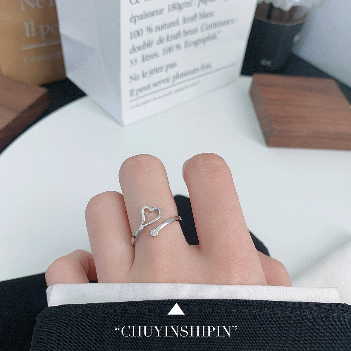 S925 Sterling Silver Simple Hollow Heart-shaped Ring Temperament Niche Design Jewelry Personality Love Open Ring Female