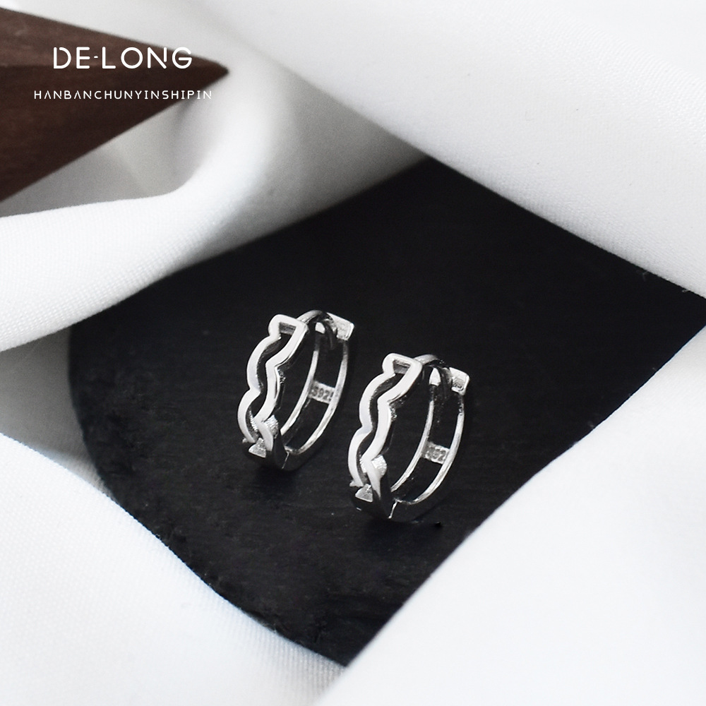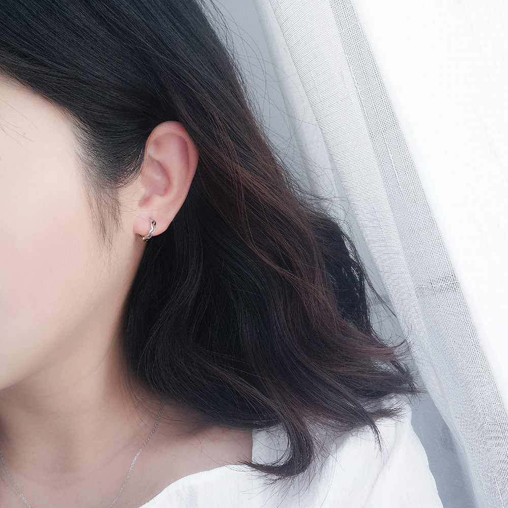 Small Temperament Wave Pattern Earrings S925 Sterling Silver Earrings Korean Version Of Simple Female Water Ripple Earrings Personality Jewelry