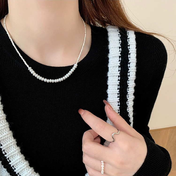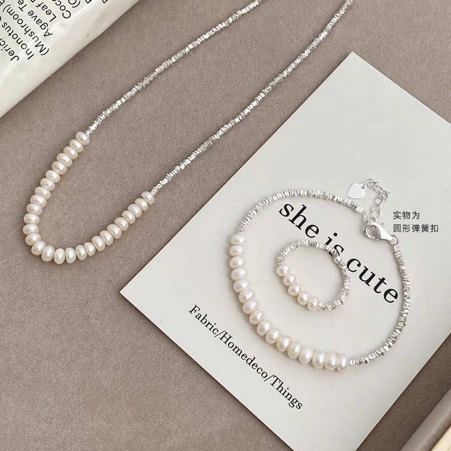 Tiqi925 Sterling Silver Wind Broken Silver Necklace Women's Natural Freshwater Pearl Ring Niche Temperament Light Luxury Bracelet