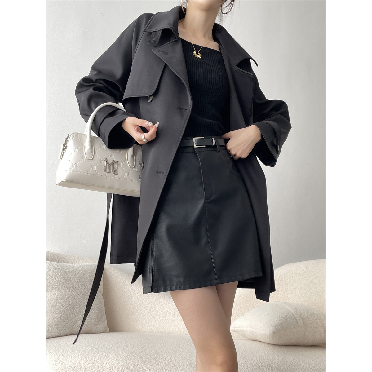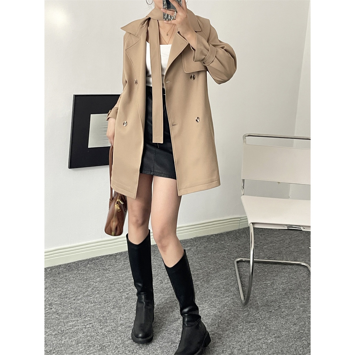 Meng Zixi British Style Mid-length High-end Drape Windbreaker Jacket For Women Autumn And Winter Tops For Women X1644