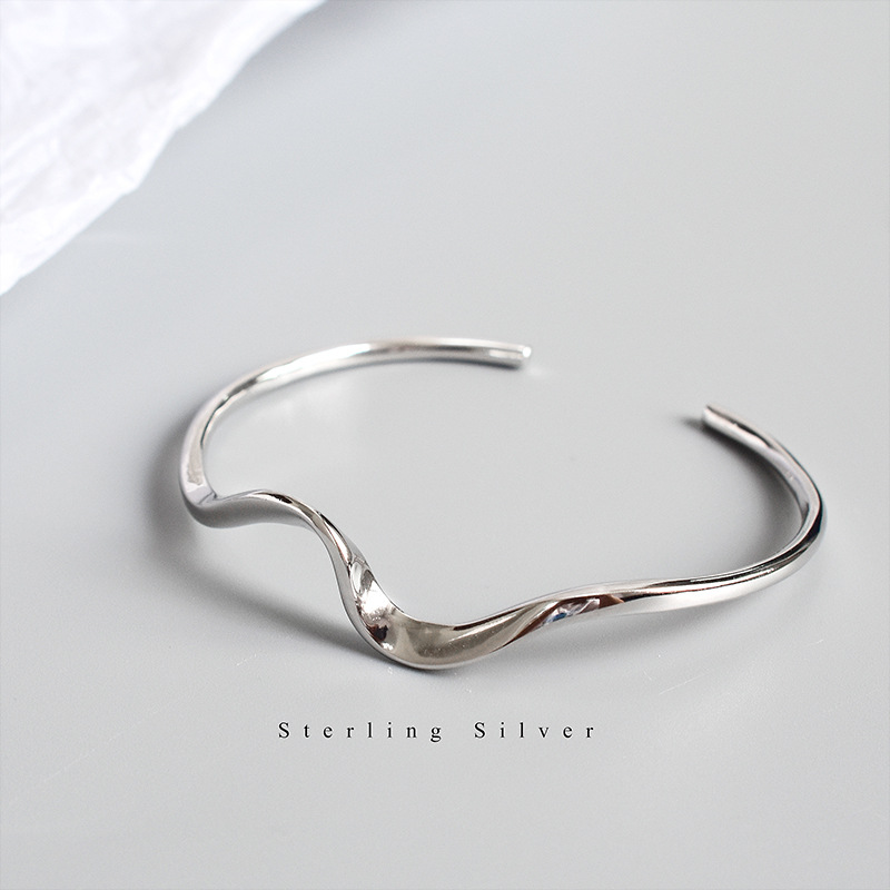 S925 Sterling Silver Bracelet Minimalist Wave Bracelet Korean Personality Female Mobius Open Bracelet Jewelry