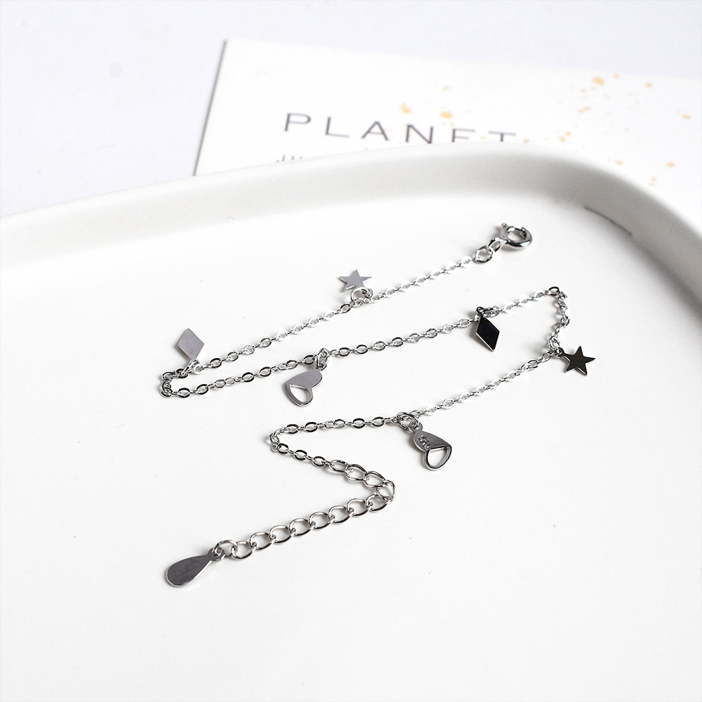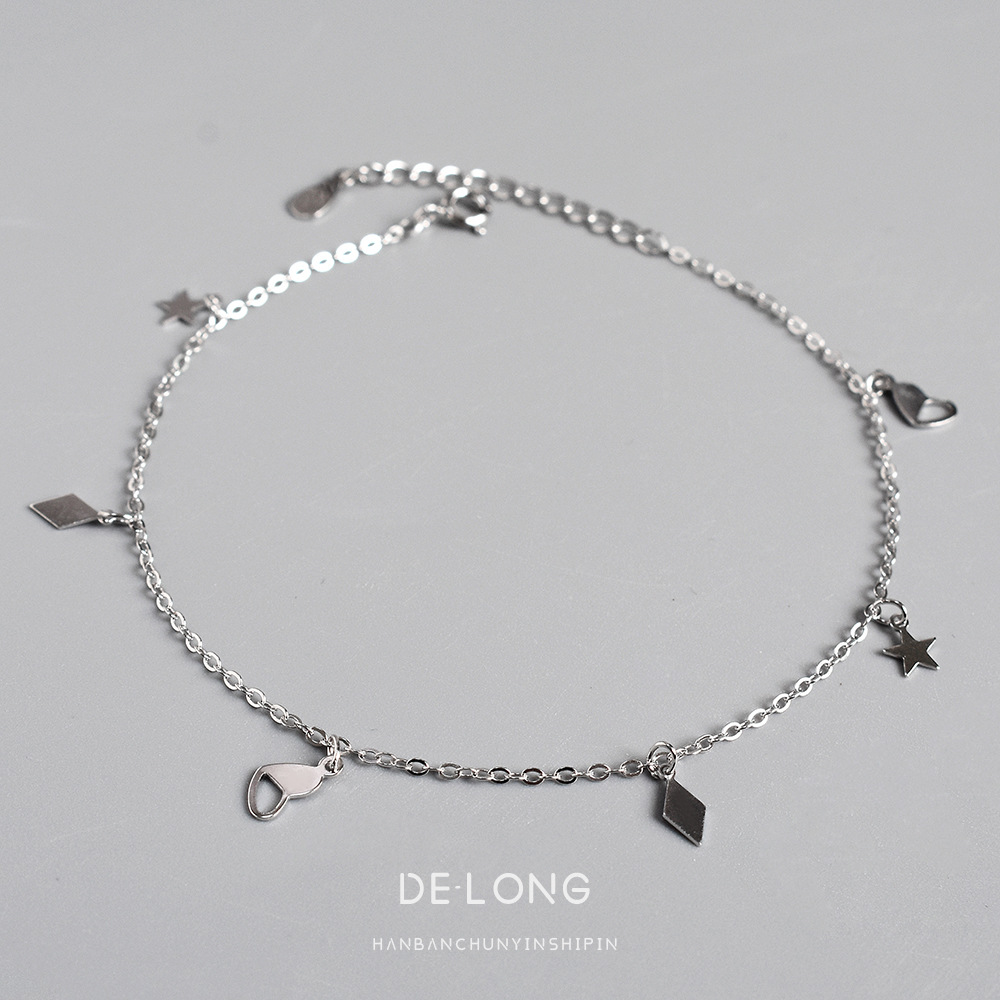 Personality Minimalist Star Diamond Heart Anklet S925 Sterling Silver Foot Ornaments Simple Female Fashion Anklety Jewelry