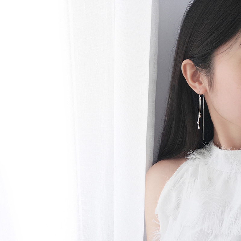 Water Drop S925 Pure Silver Earrings Chic Korean Style Personality Temperament Female High-end Earrings Fashion Earrings Silver Jewelry
