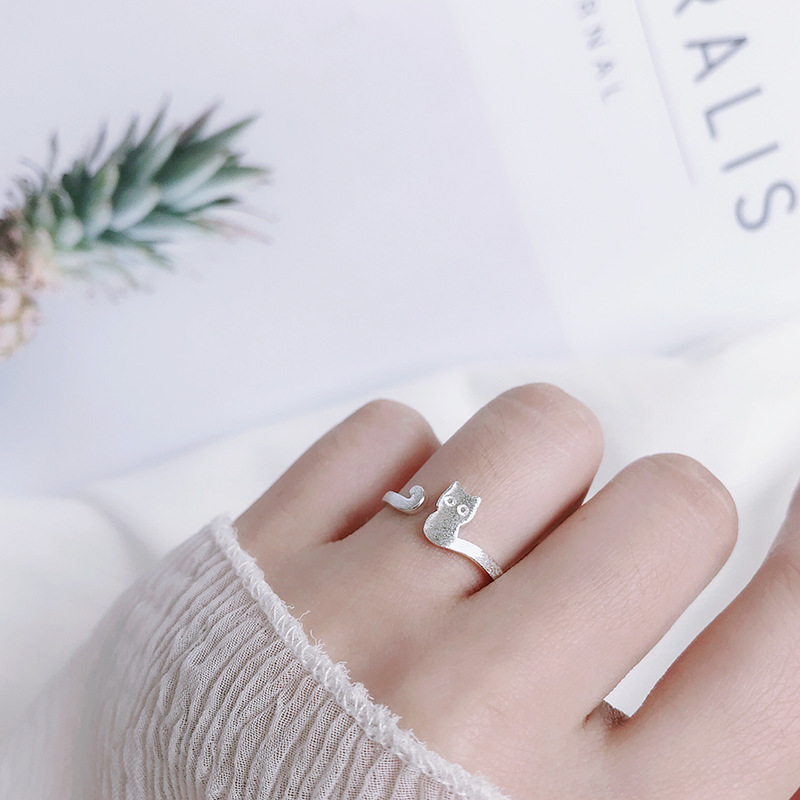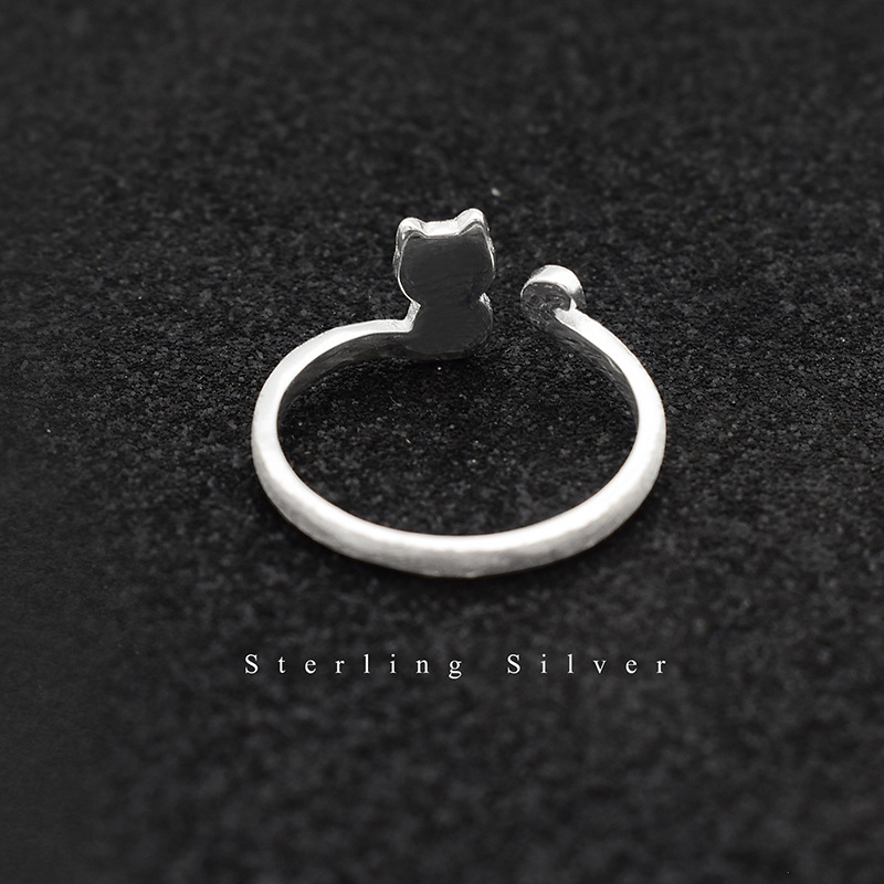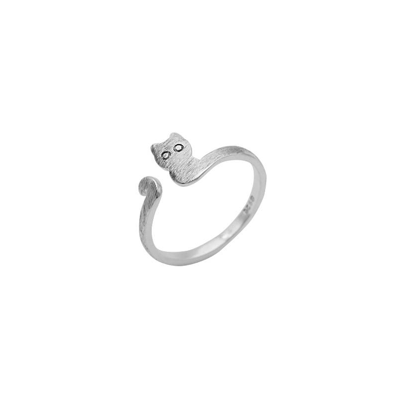 S925 Sterling Silver Brushed Cat Ring Korean Version Temperament Simple Female Kitten Ring Fashion Silver Ring Jewelry
