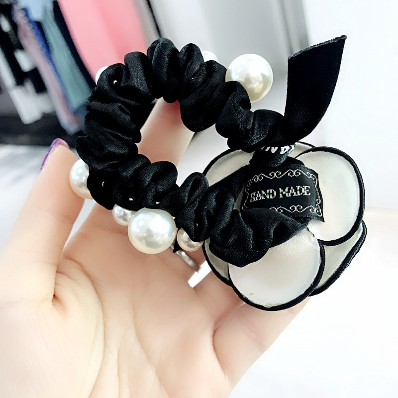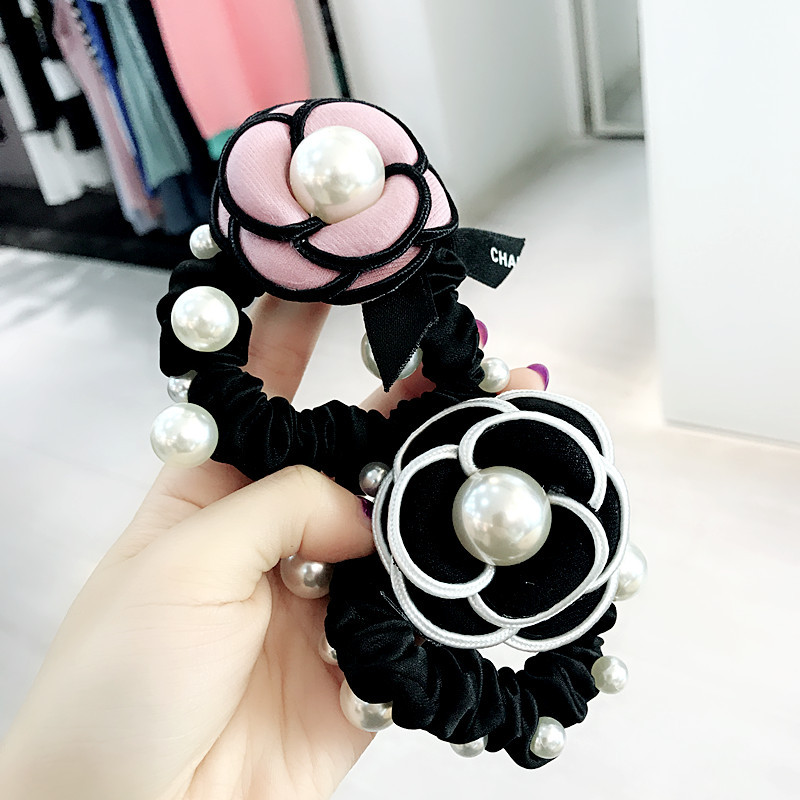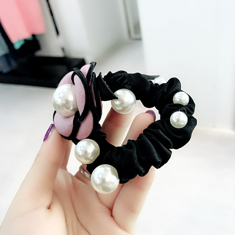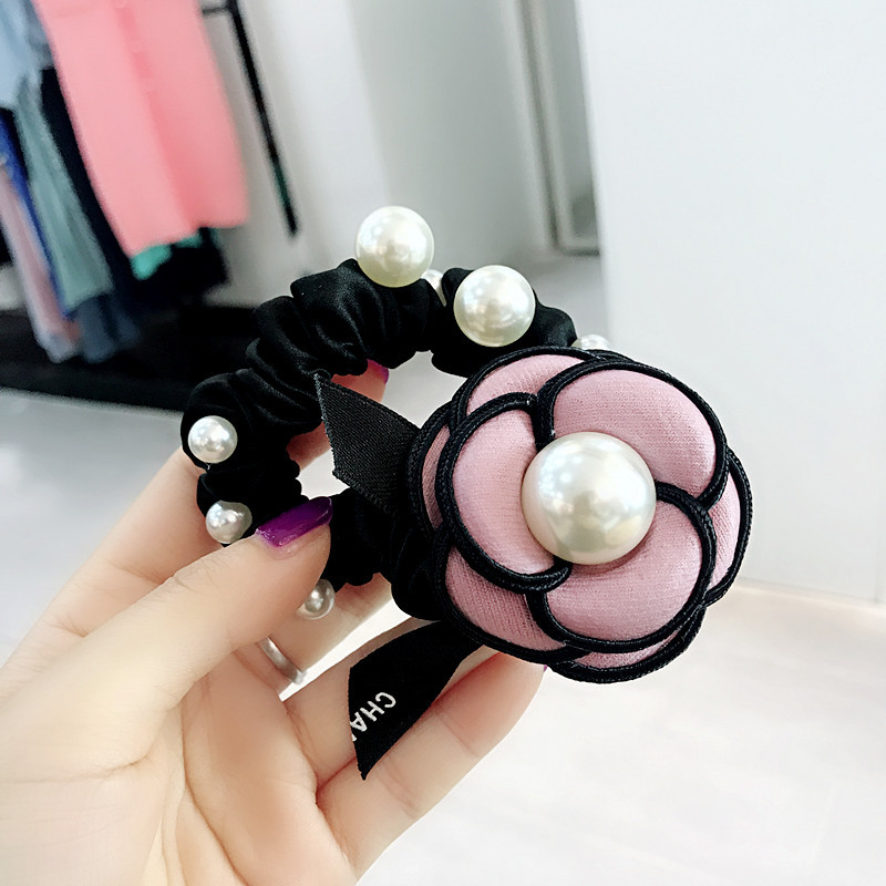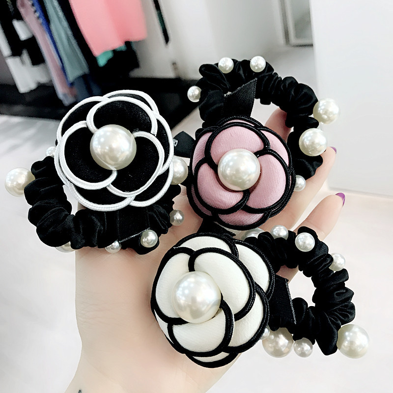 Bow Hair Rope Korean Camellia Head Rope Pearl Hair Ring Flower Retro Large Intestine Hair Tie Hair Headband Hair Accessories