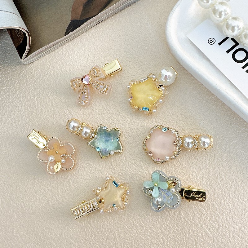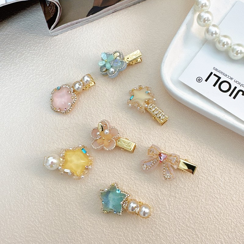 Korean Version Of The Mini Crystal Clip Single Word Clip Hairpin Sweet Cute Girl Bangs Clip Versatile Star Duckbill Clip