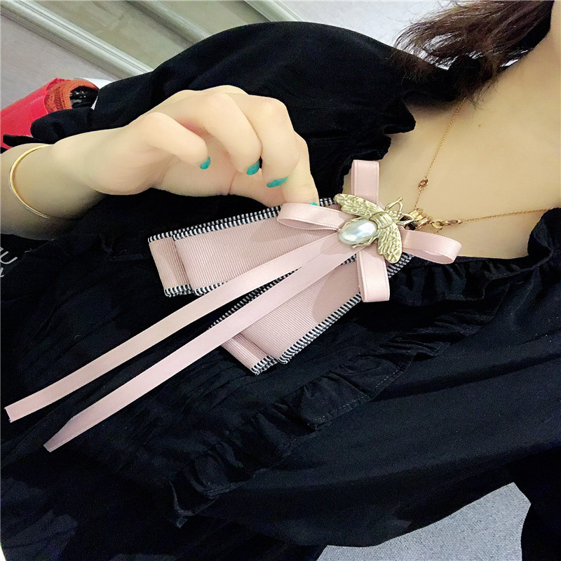 European And American Accessories Bee Bow Pink Bow Tie Long Floating Collar Flower Korean Style Brooch Pin Collar Pin For Women