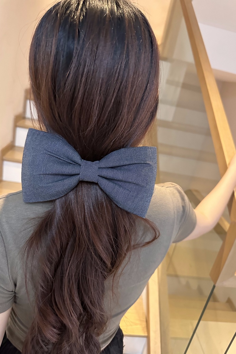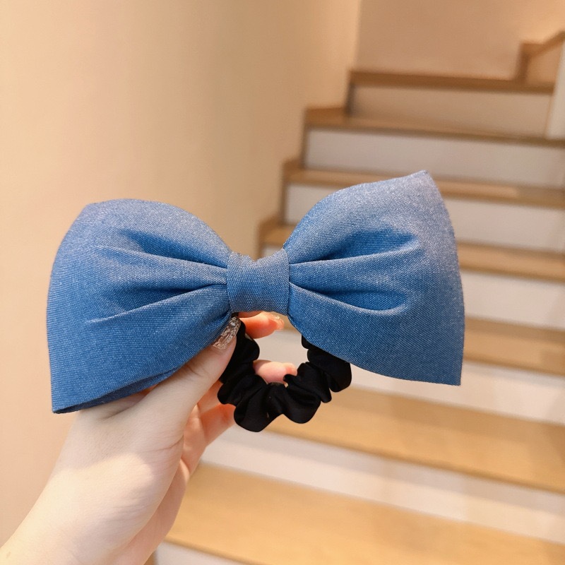Korean Large Version Of Denim Bow Spring Clip Female Hairpin Net Celebrity Temperament All-match Back Of The Head Top Clip Hairpin