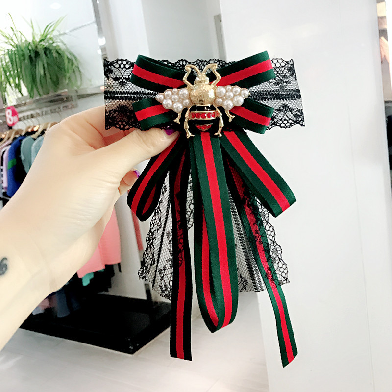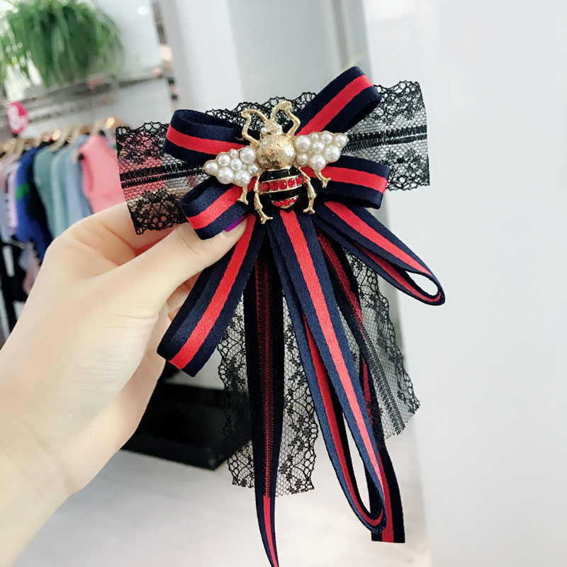 European And American Fashion Bow Tie Flower Korean Style Bee Bow Striped Lace Brooch Accessories Collar Pin For Women