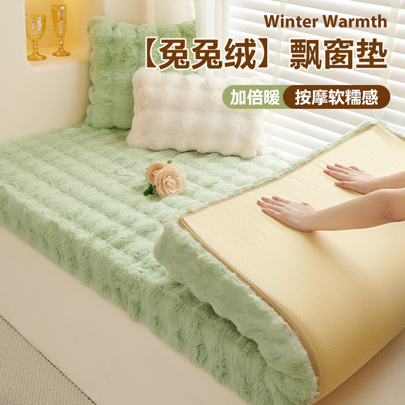 Winter Rabbit Velvet Bay Window Mat Window Sill Mat Winter Light Luxurious High- Grade Sponge Plush Balcony Mat