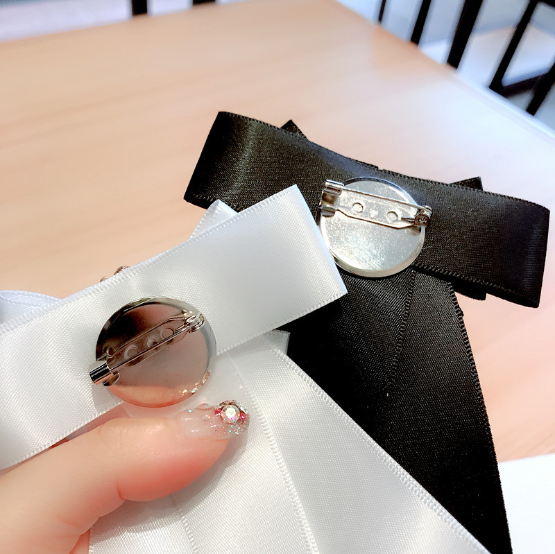 Korean Chanel Style Bow Tie Lace Ribbon Bow Tie With Pin Shirt Collar Accessories Rhinestone Collar Flower Pin For Women
