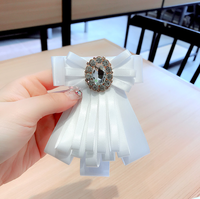 Korean Style Shirt Accessories Rhinestone Gemstone Bow Tie Brooch Corsage Retro Bow Neck Flower Collar Pin Pin Women All-match