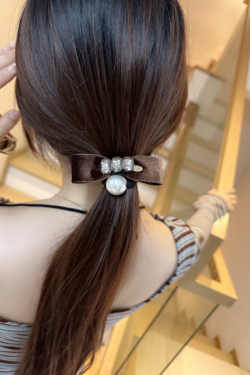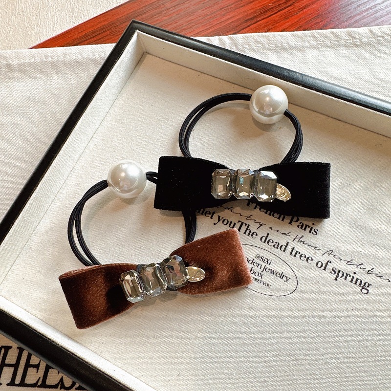 Korean Velvet Bow Diamond Rubber Band Hair Rope Autumn And Winter Ponytail Hair Ring Headdress Female Ball Hair Rope