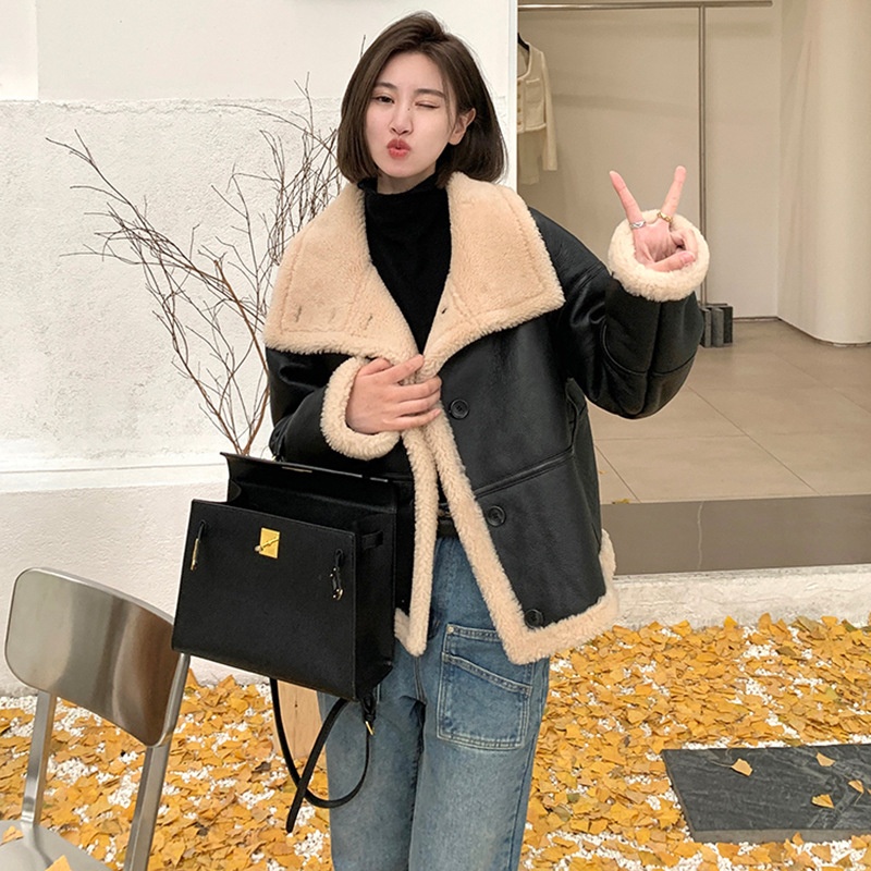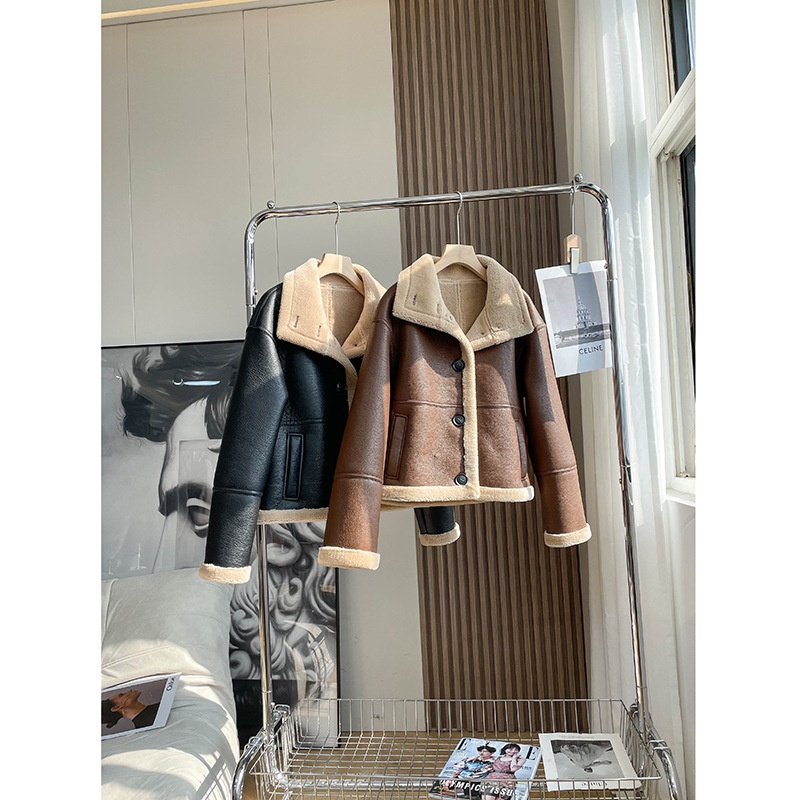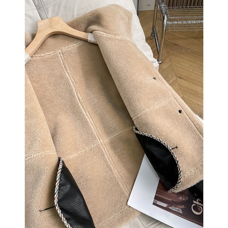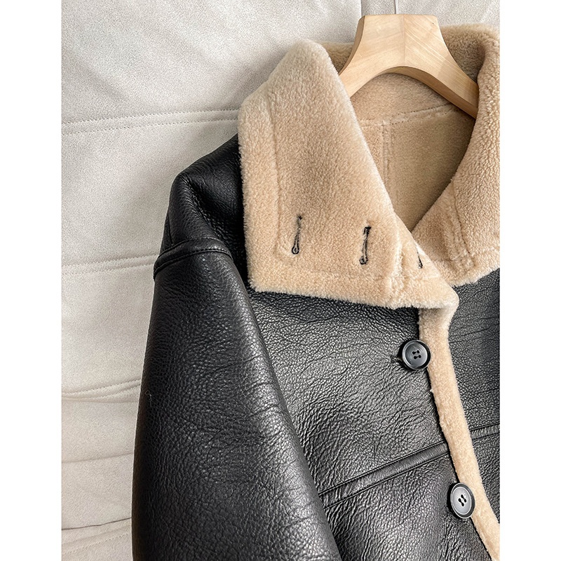 Snow Mountain Embrace Full Wool Sheepskin Grain Leather Composite Fur One-piece Stand-up Lapel Super Warm Fur Coat