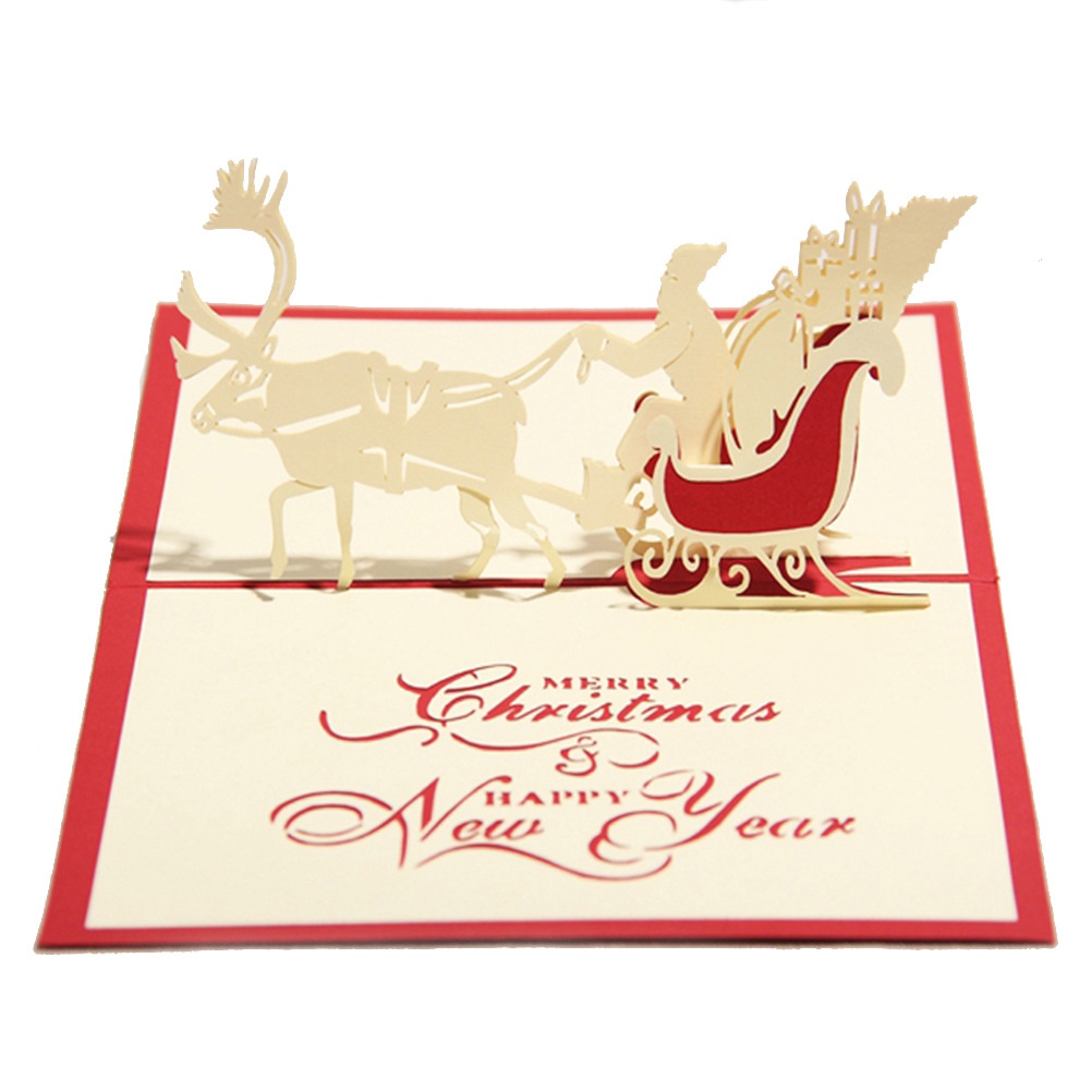 3 D Three-dimensional Greeting Card Korean Creative Gift Hollow Paper Carving Deer Car Christmas Holiday Foreign Trade Greeting Card Small Card