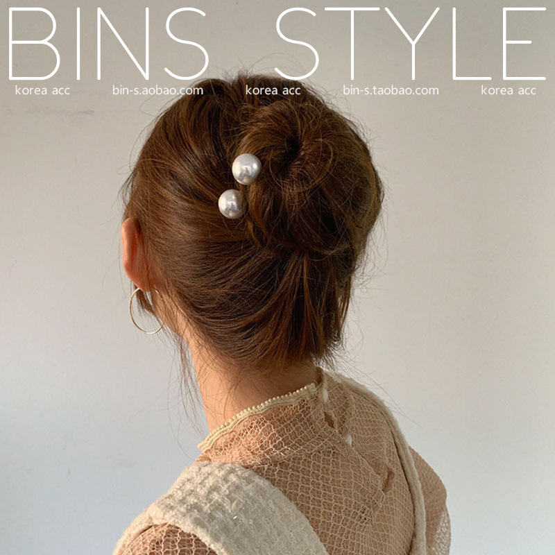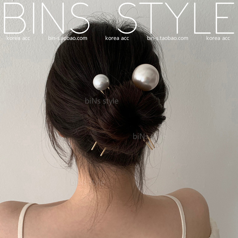 Korean Style Versatile Temperament Niche Simple Large Pearl U-shaped Clip Ball Bud Hair Hairpin Girl Hairpin