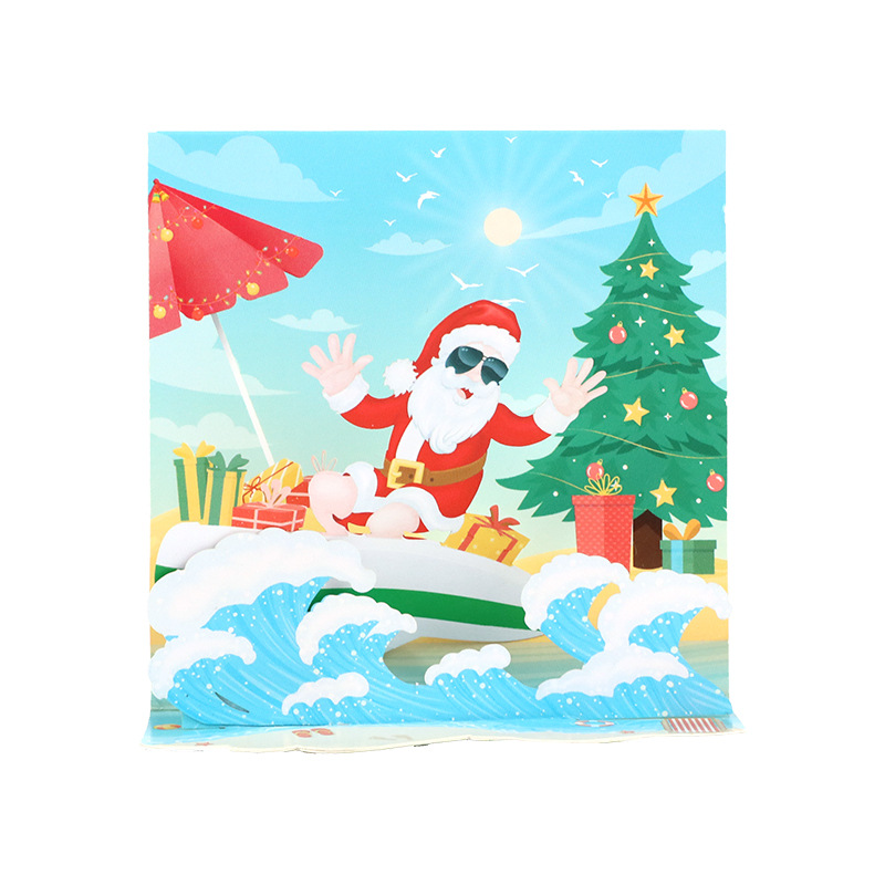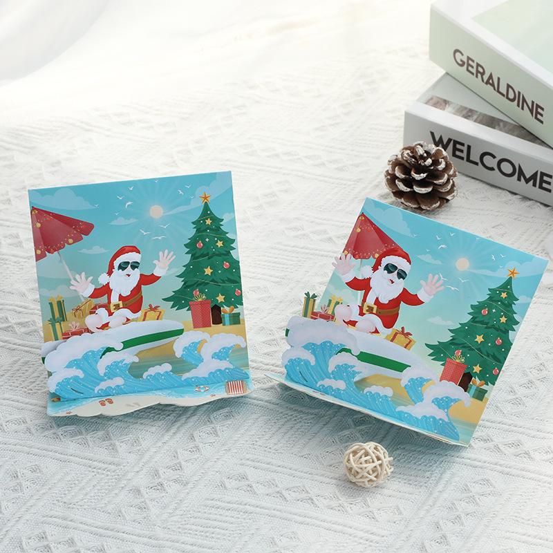 Christmas Greeting Card Surfing Old Man Three-dimensional Card Cartoon Creative Gift Card Christmas Southern Hemisphere Christmas Gift