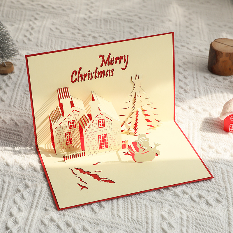 Creative Paper Carving Three-dimensional Greeting Cards Christmas Greeting Cards Handmade Greeting Cards Holiday Cards Christmas Castle Message Cards