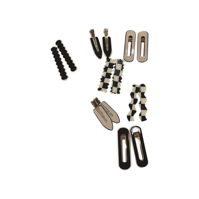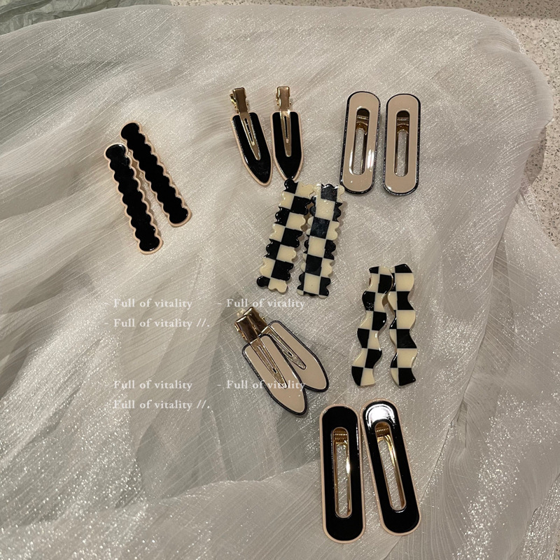 Black And White Checkerboard Girl Retro Acrylic Bangs Hair Clip Broken Hair Beauty Mask Duckbill Edge Clip Hair Accessories