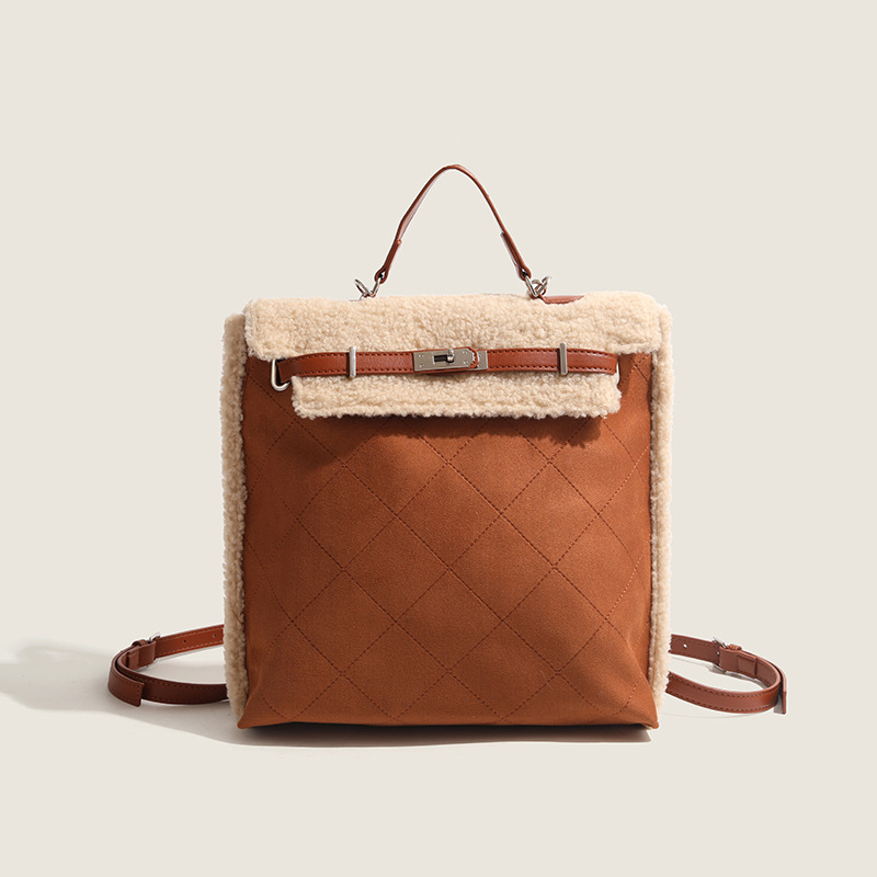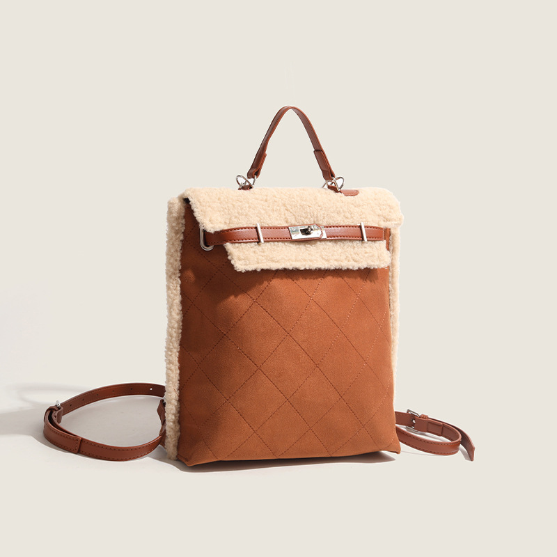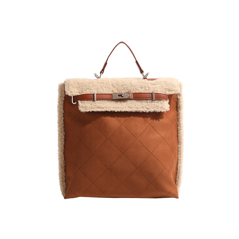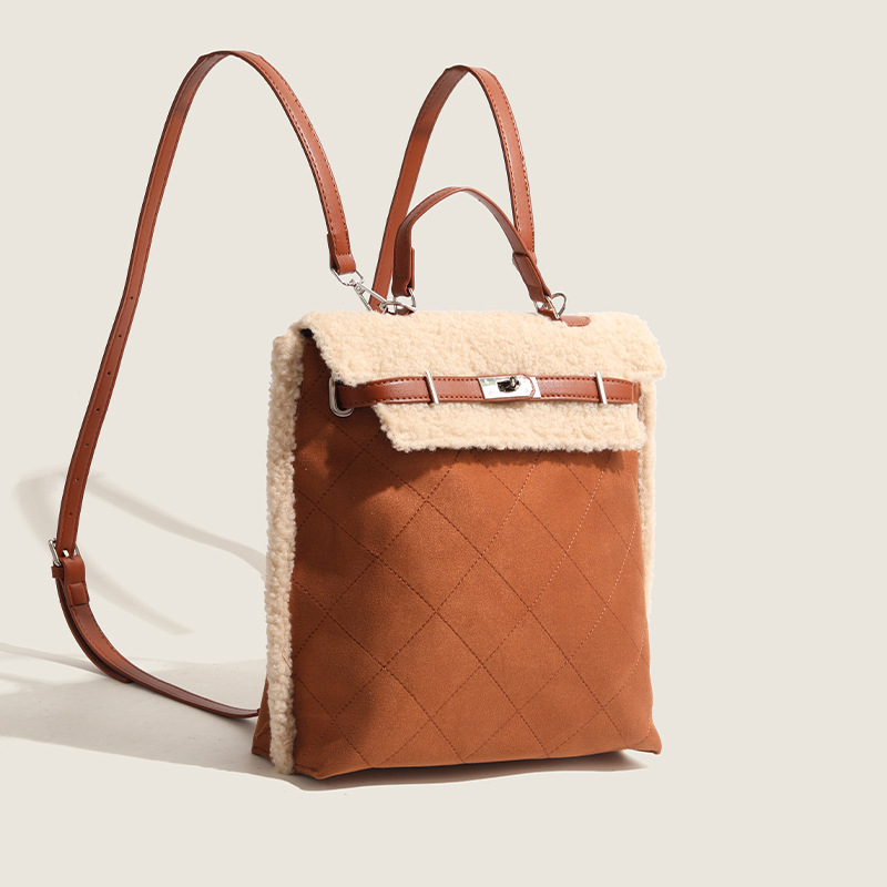 High-end Autumn And Winter Plush Backpack Women's Korean Version Shoulder Handbag Fashionable Versatile Cross-body Bag