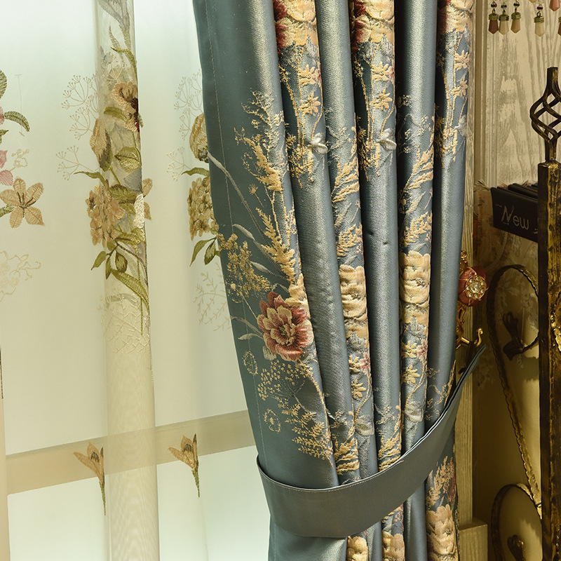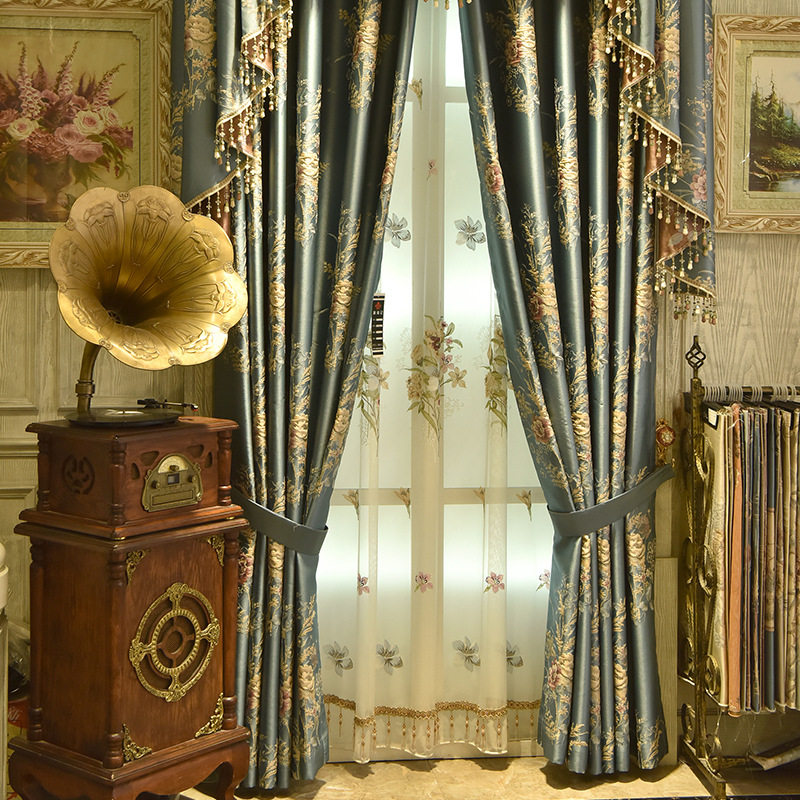 Supplies European-style French- American Style Villa Living Room And Bedroom High-precision Imitation Silk Positioning Jacquard Curtain Cloth Large