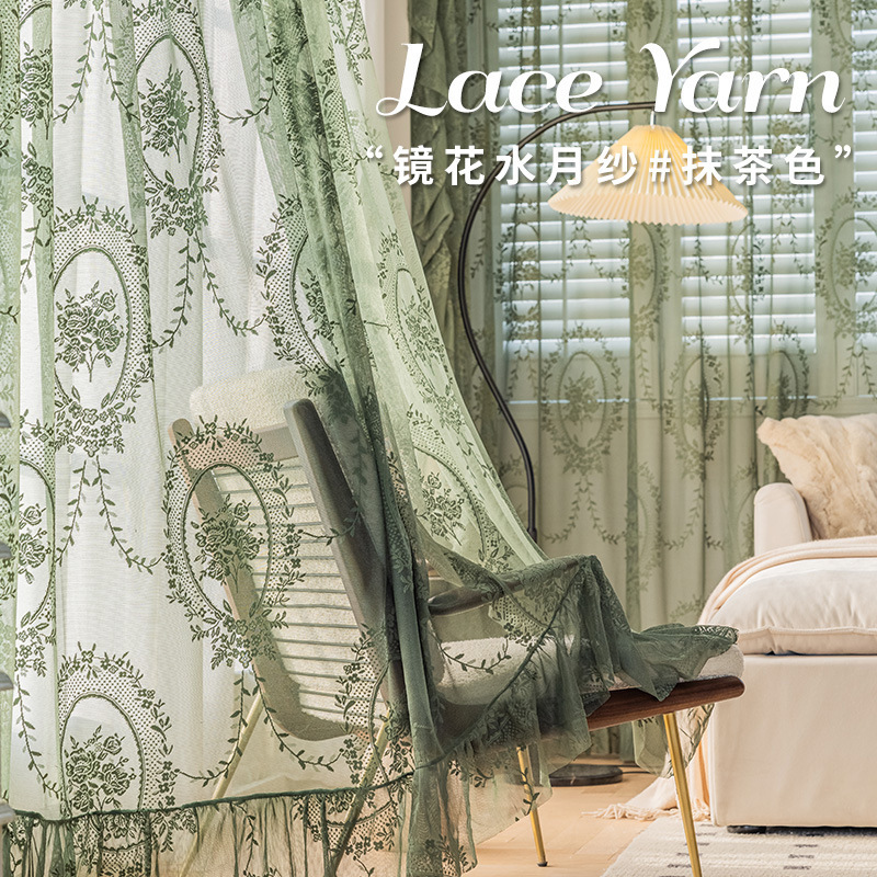 French Relief Princess Rococo Gauze Curtain With Lace Romantic European Style Window Screen Door Curtain Living Room Balcony Lace Gauze
