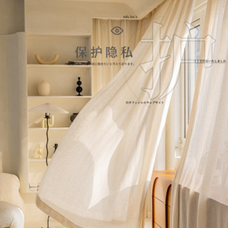 Japanese Gauze Curta, Log Style Curta, Cotton And Linen Bedroom Cream Color, Light-transmitting And Opaque, Window Screens, Cloth And Gauze Customization