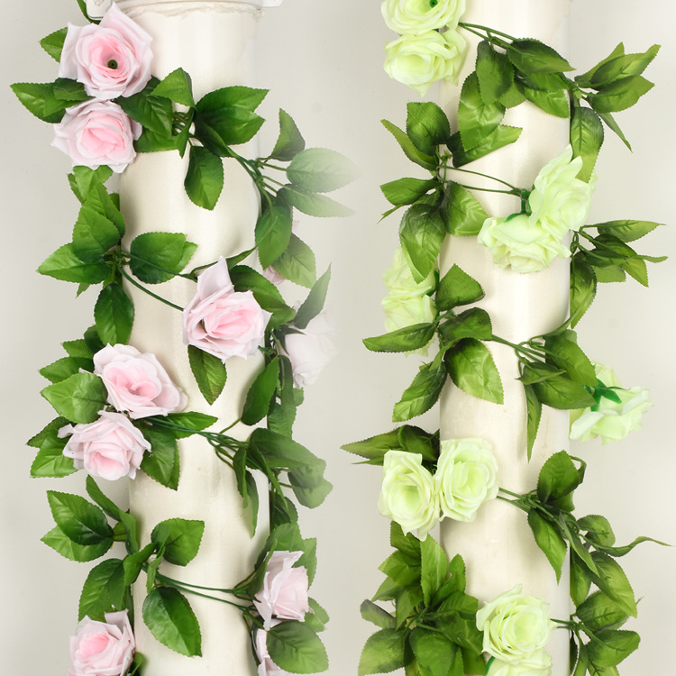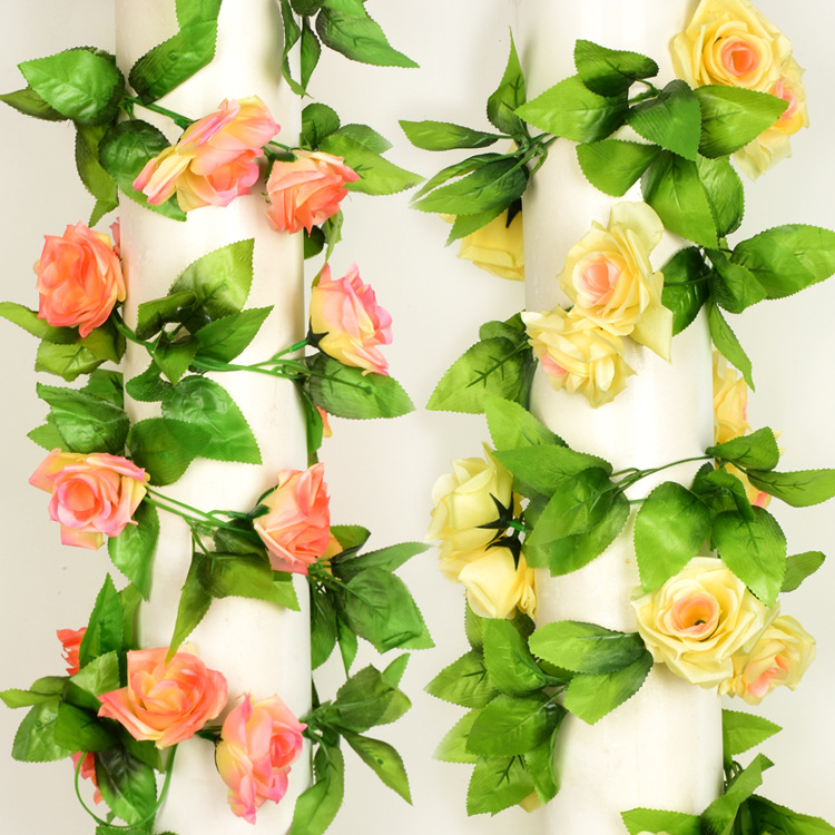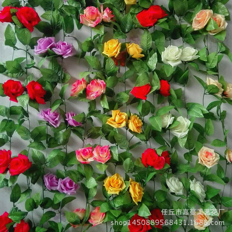 Simulated9-head Rose Vine Strips Living Room Silk Flower Air Conditioning Pipe Flower Vine Vine Wall Hanging