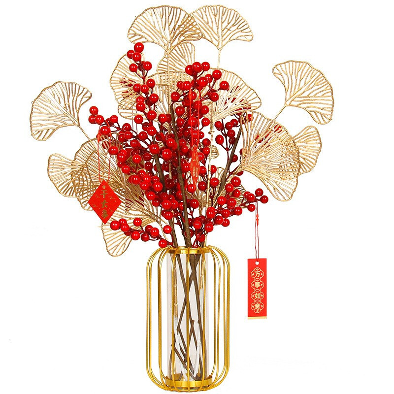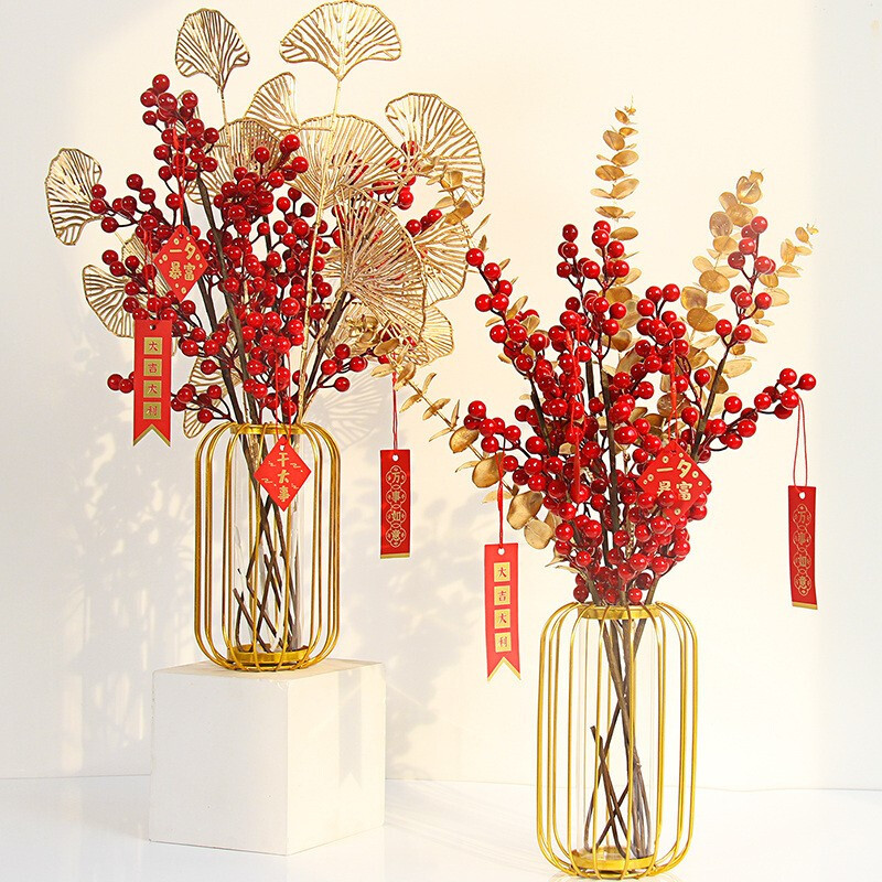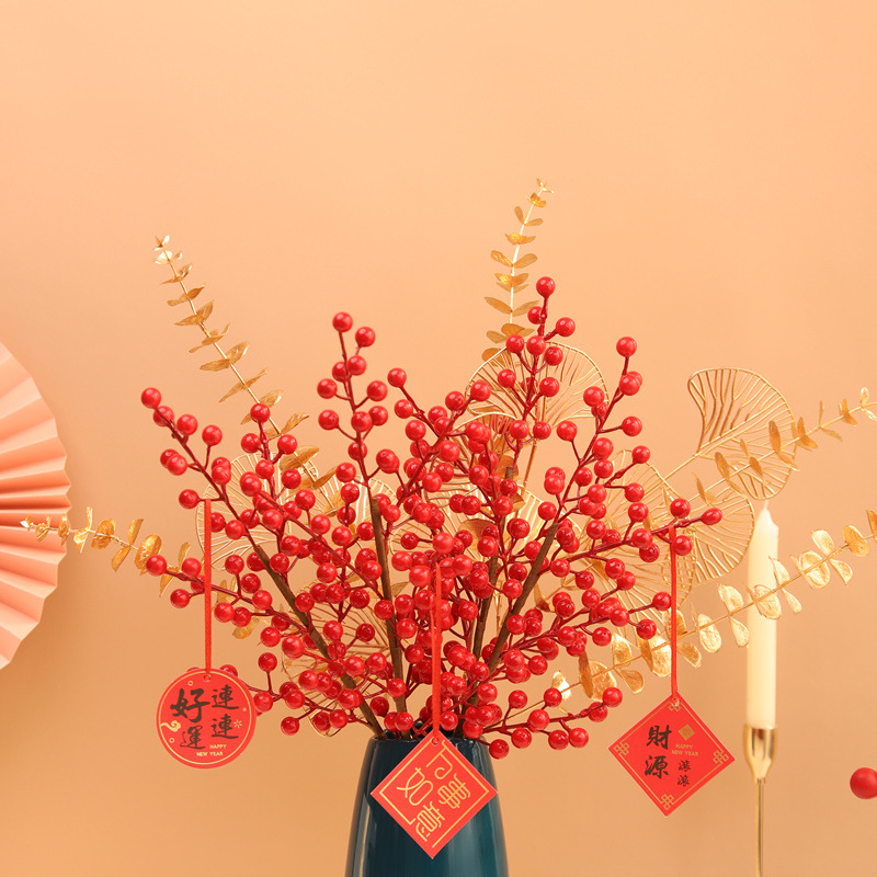 Artificial Flower Artificial Flower Decoration Living Room Spring Festival Year Decoration Flower Year Floral Decoration Fortune Fruit Red Fruit Holly Fruit