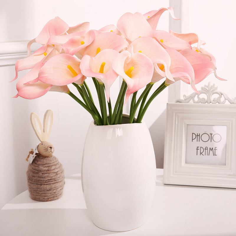 P U Calla Lily Artificial Flower Mini Calla Lily Flower Plastic Artificial Flower Wedding Bouquet Home Decoration Floral Art