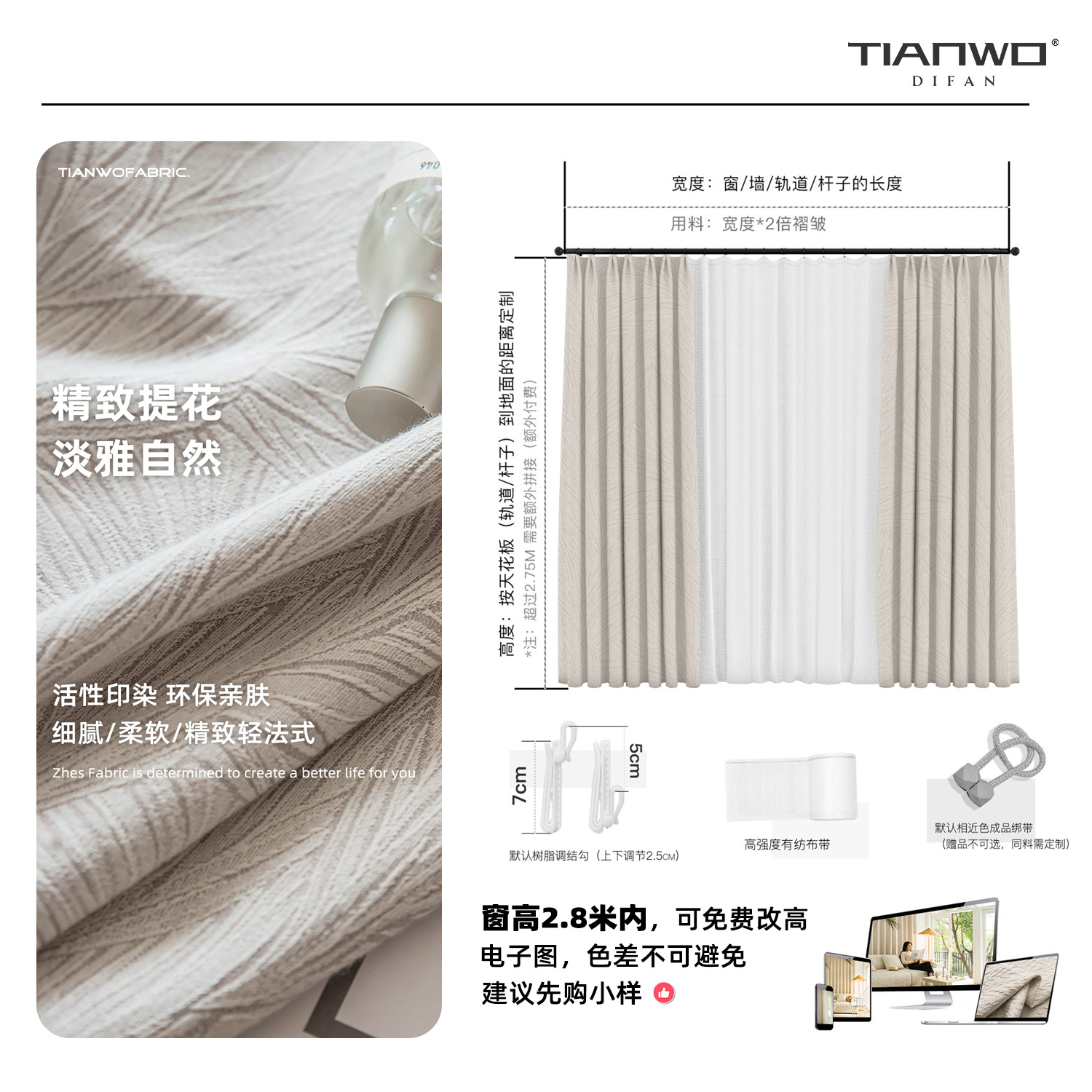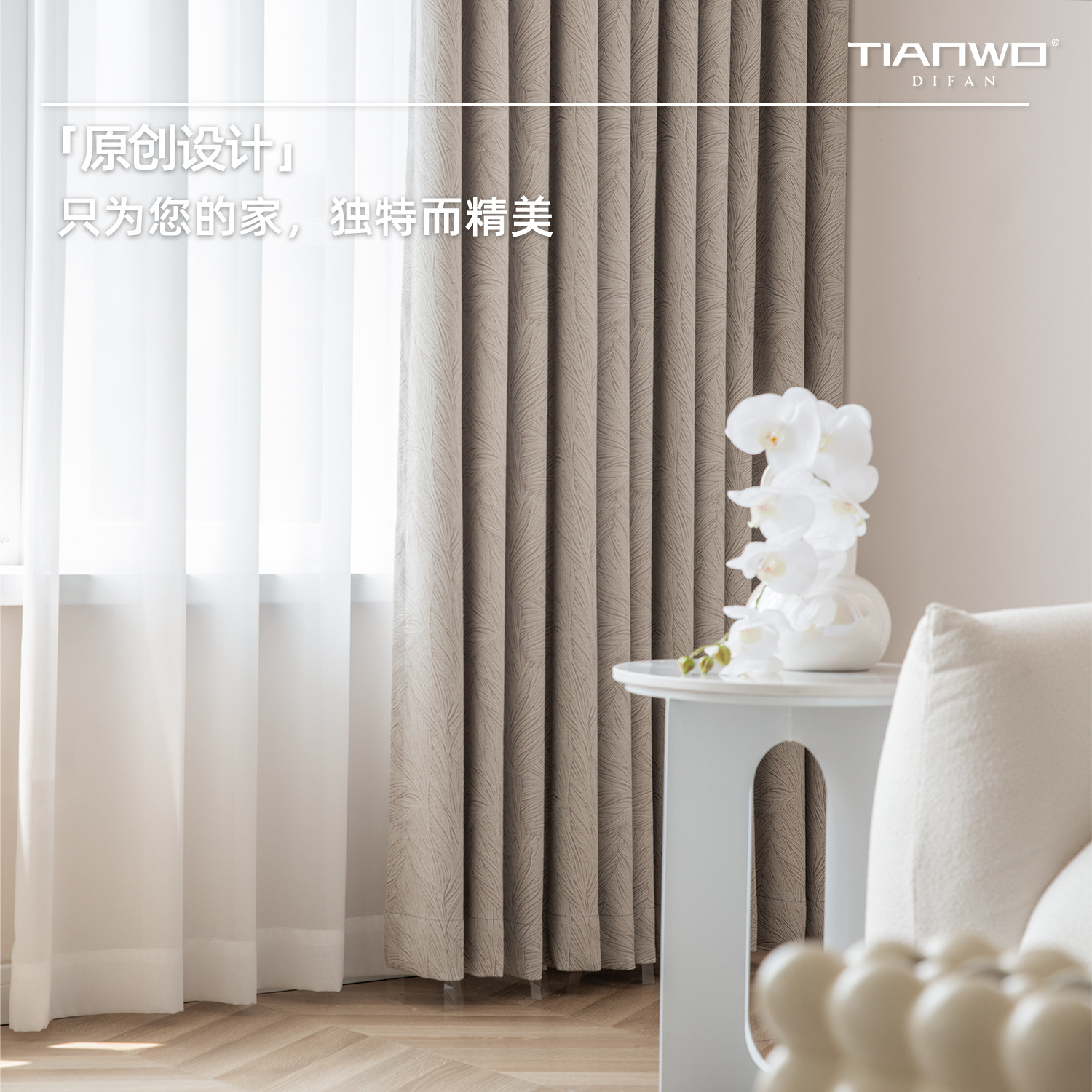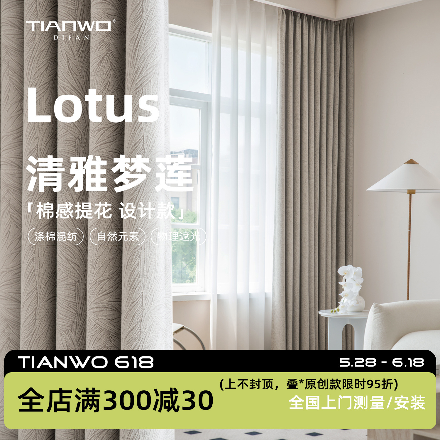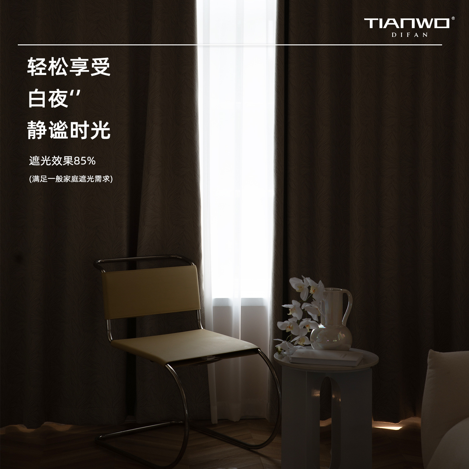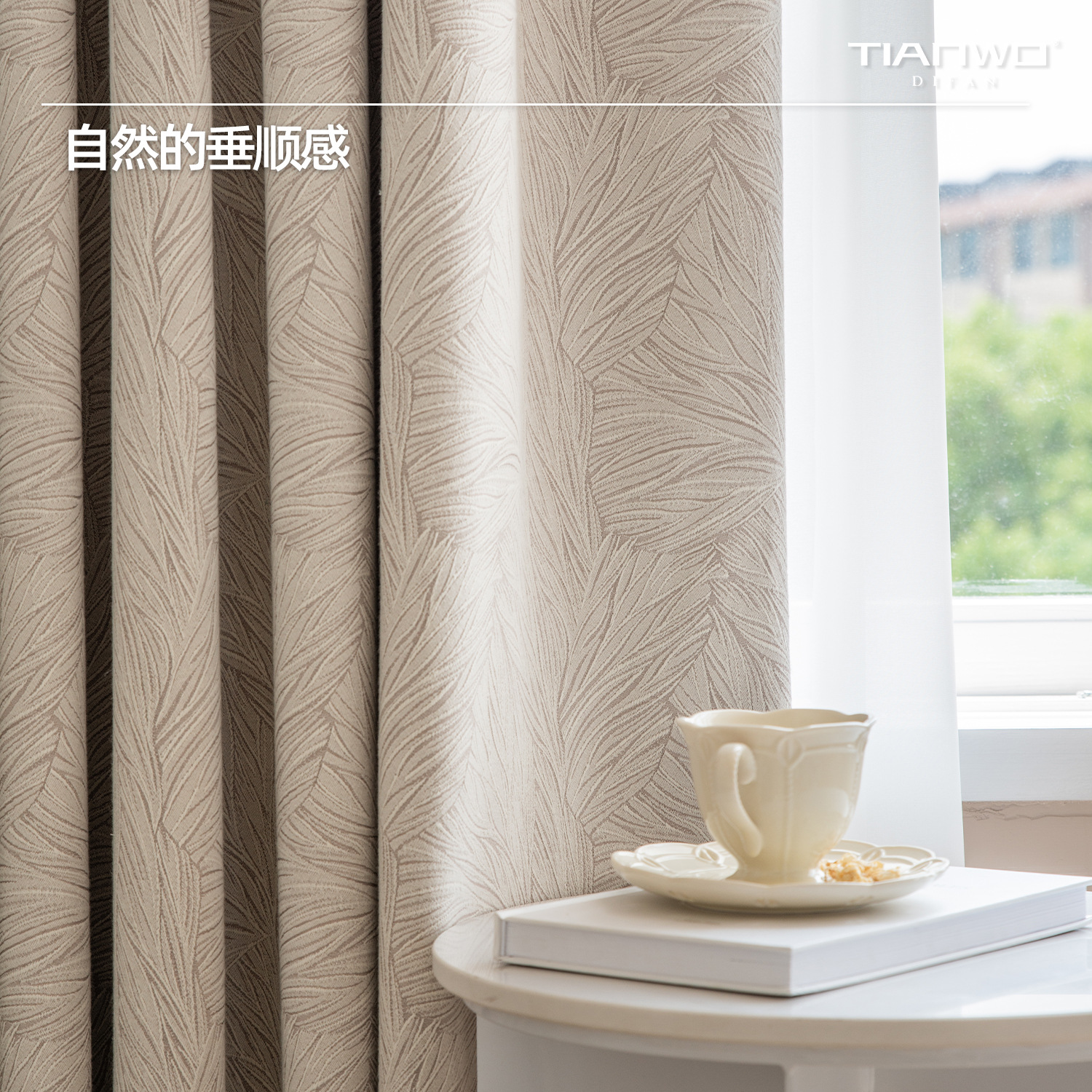 Tianwo French Polyester-cotton Natural Leaf Pattern Jacquard Blackout Shaoxing Light Luxury Curta Modern Bedroom